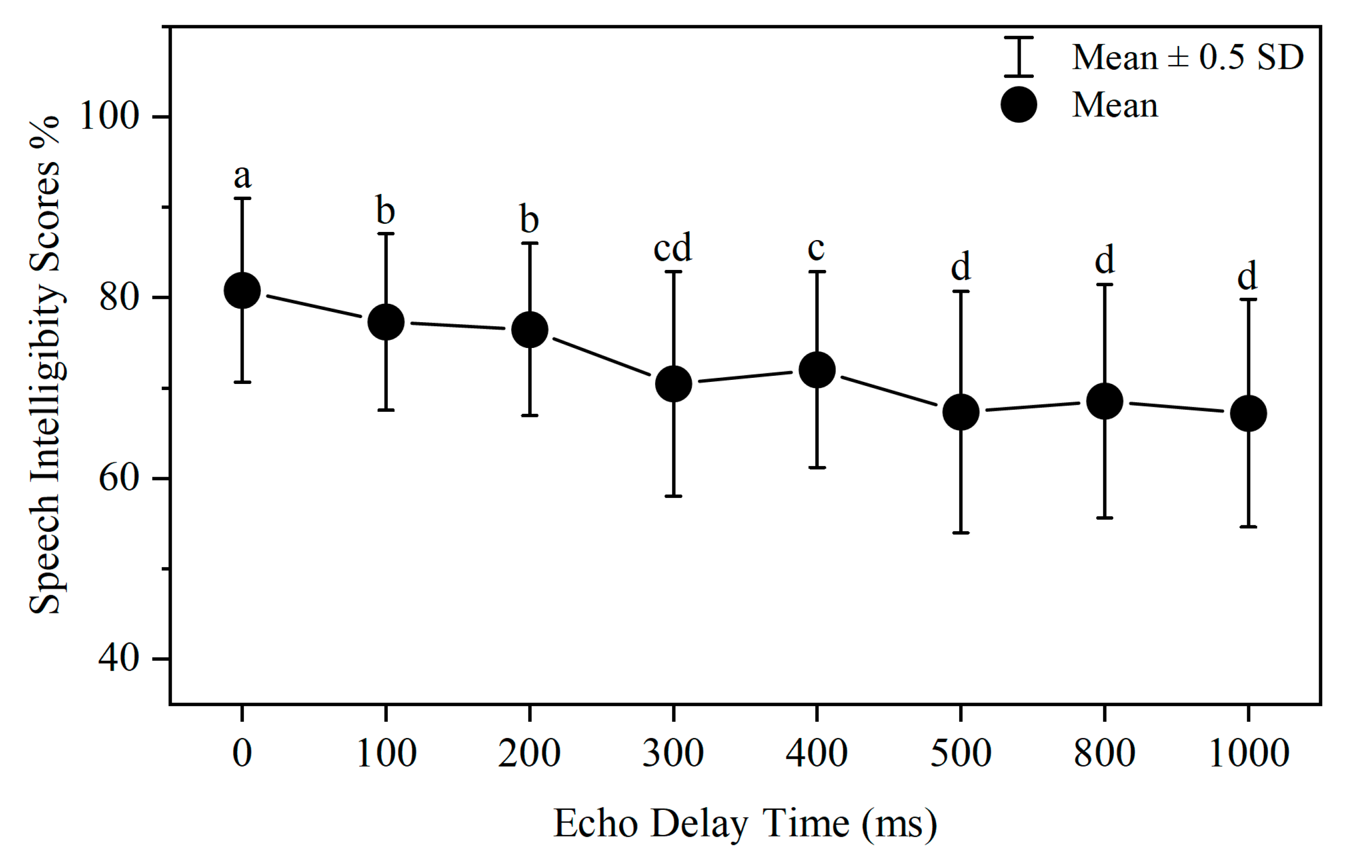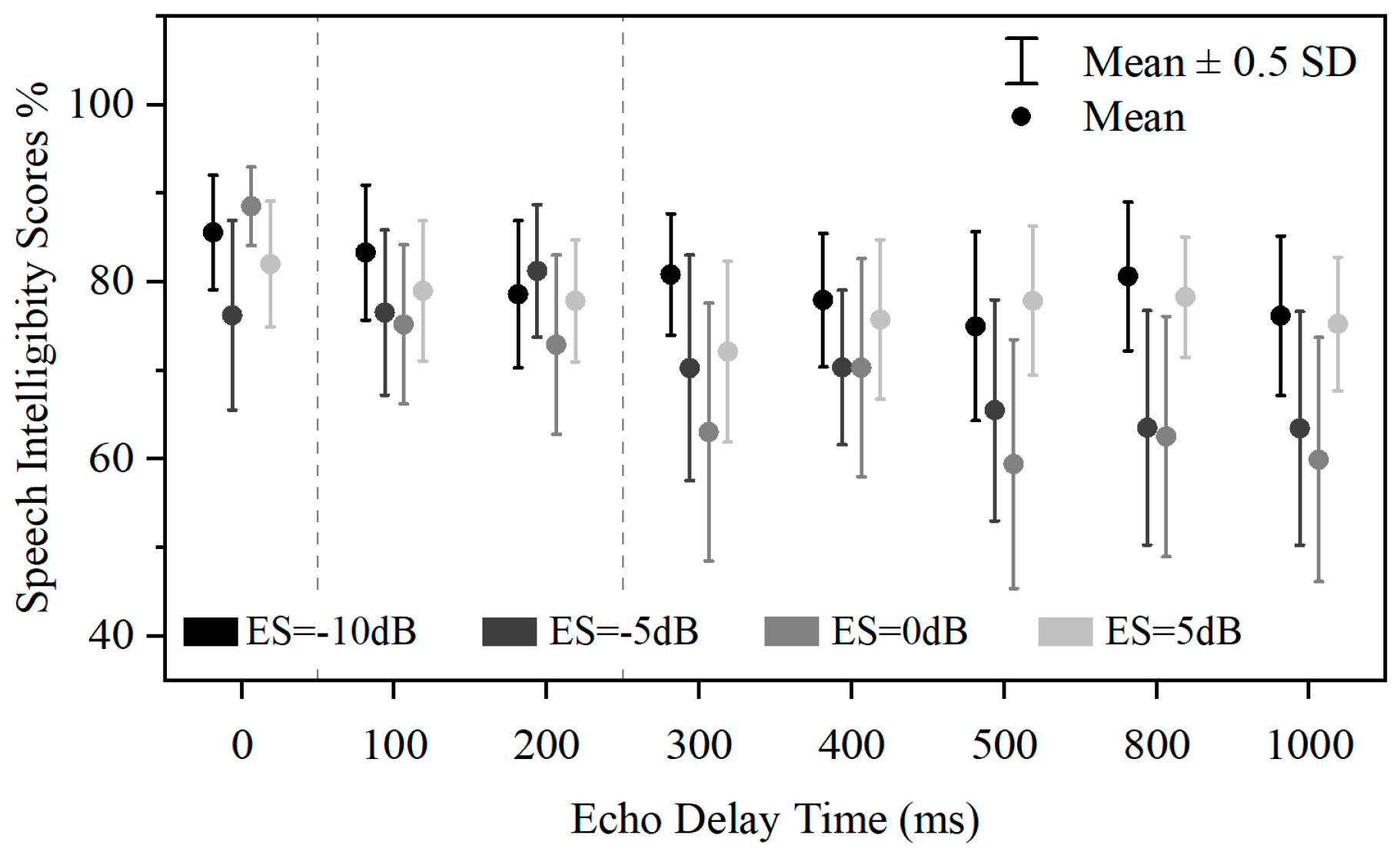 3.2. Effects of Echo Interference on Speech Intelligibility