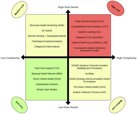 Unlike previous reviews that focus on specific disaster types (e.g., earthquakes [4] or fires [24]) or isolated methodologies (e.g., FTA [25] or FEA [7]), this study provides a cross-domain synthesis of over 100 risk analysis models, so a comparative evaluation of their strengths, limitations and contextual applicability.