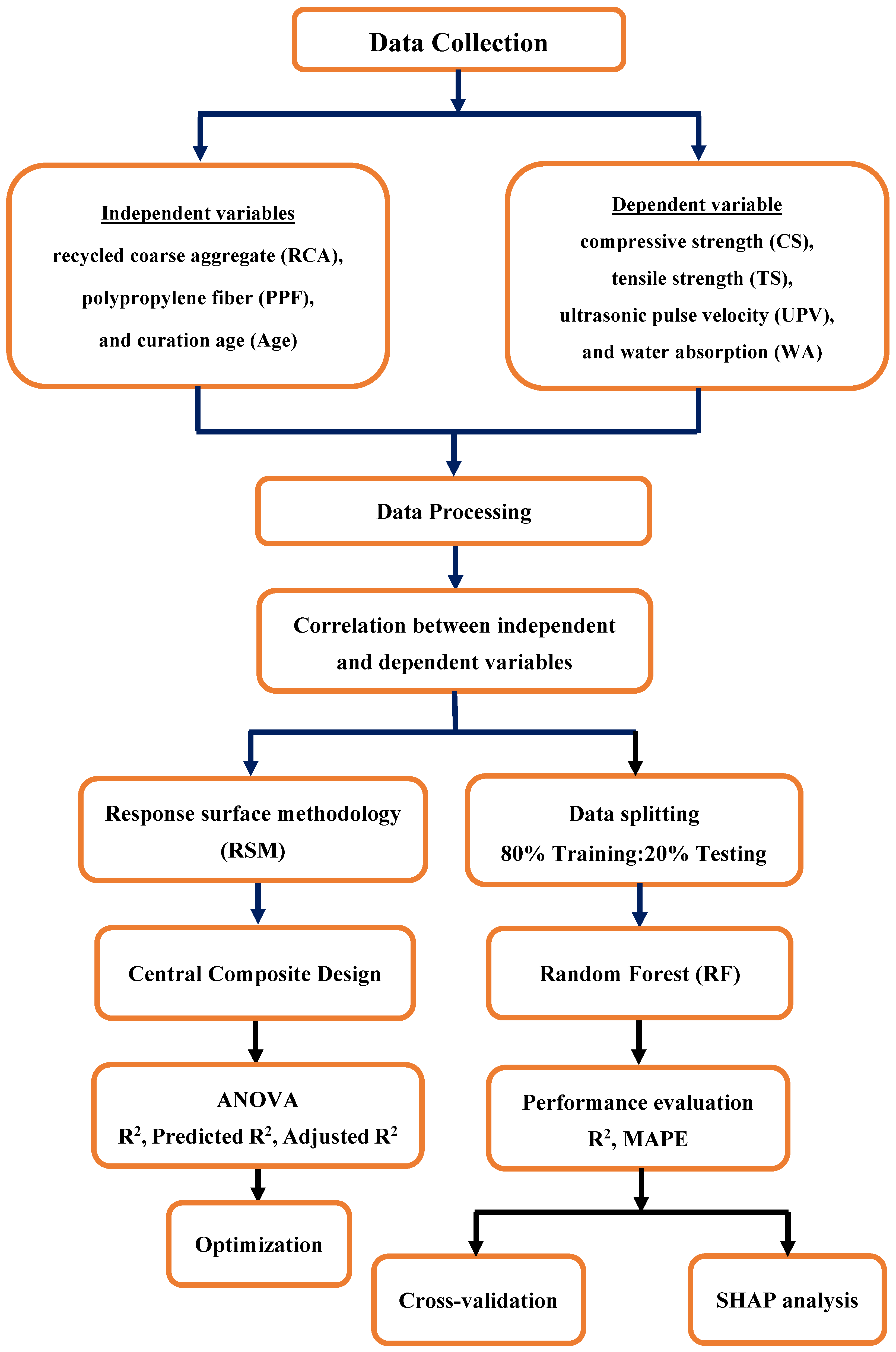 - This study developed a robust and accurate predictive tool for engineers and researchers. The RF model and QM from RSM can be utilized to optimize sustainable concrete mix designs containing RCA and PPF without the immediate need for extensive laboratory trials. This accelerates the mix design process, reduces material costs, and promotes the wider adoption of sustainable construction practices.