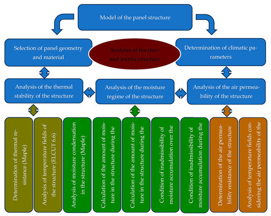Within the framework of the study, the thermophysical parameters of the structures were analyzed, including thermal performance (thermal resistance, temperature field distribution, and thermal inertia), and moisture and airflow regimes. The theoretical analysis was carried out using the modern numerical modeling software package ELCUT 6.6 [25,35,36,37] and the computer algebra system Maple, which enhanced the reliability of the calculations.