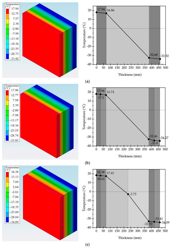 Figure 4 presents an analysis of the temperature fields in multi-layer variotropic panels, simulated using the ELCUT 6.6 software package [25,36].