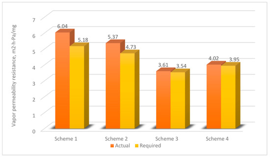 Table 3 presents the results of the analysis of the required and actual air permeability resistance of multi-layer variotropic panel structures.