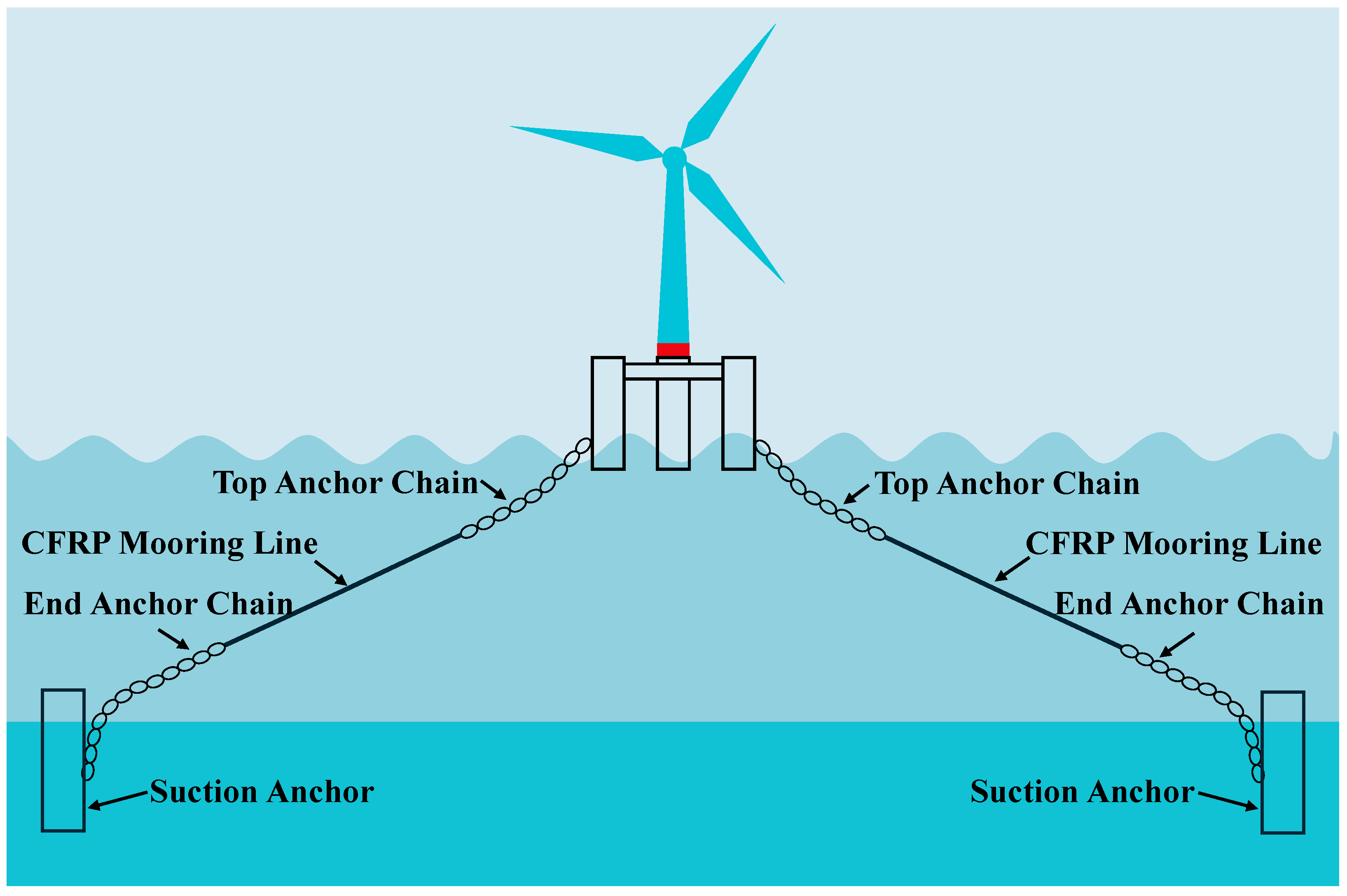 Due to the early dominance of fixed-bottom wind turbines in the offshore wind industry and the long-standing high cost of carbon fiber, there were relatively few related studies on the application of CFRP mooring lines. Based on pultruded helical CFRP rods, D. Jackson et al. [