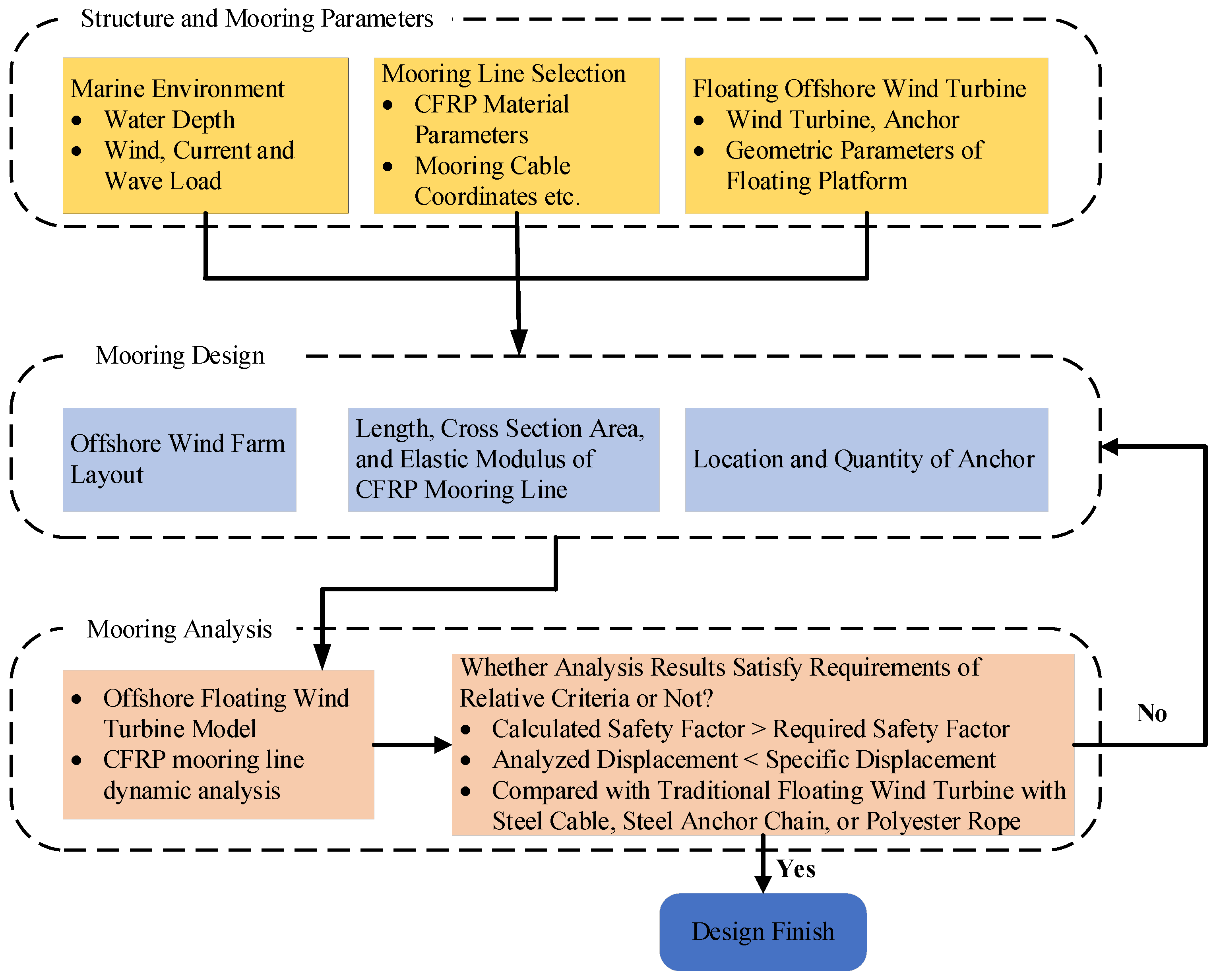 The procedure for the mooring design and dynamic analysis of an offshore floating wind turbine with CFRP mooring lines is illustrated in
