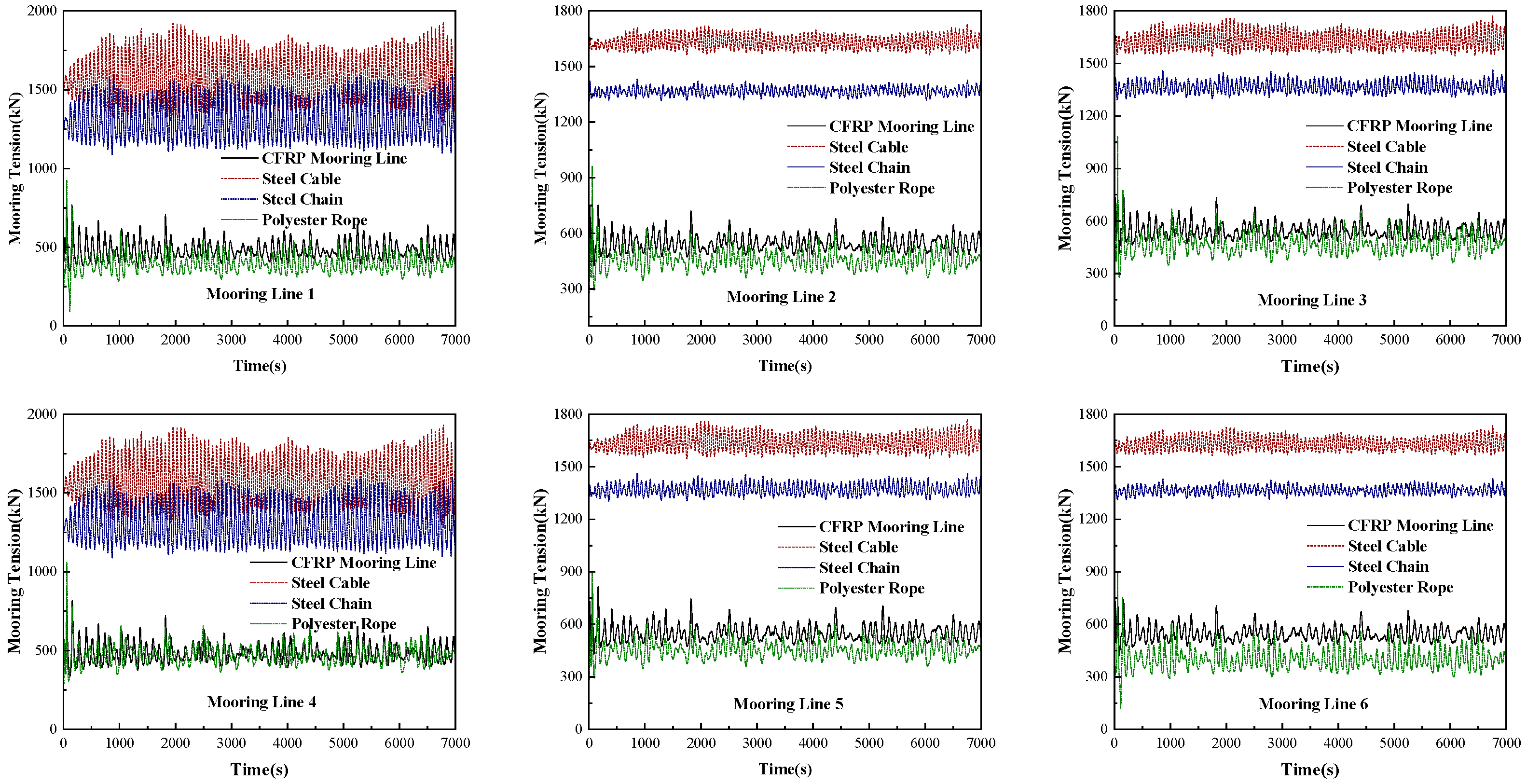 1] proposed a CFRP mooring cable design for floating offshore drilling platforms after comparing the physical and mechanical properties of steel wire ropes, polyester ropes, HMPE ropes, and CFRP tendons. By a numerical simulation method, Eduardo [
