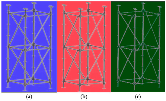 After image processing technology, the cuplok scaffold system that needs to be identified can be effectively segmented from the complex background. The original image of the cuplok scaffold is shown in Figure 2, The images of the Cuplok scaffolding brackets under red, green, and blue background conditions are shown in Figure 3.