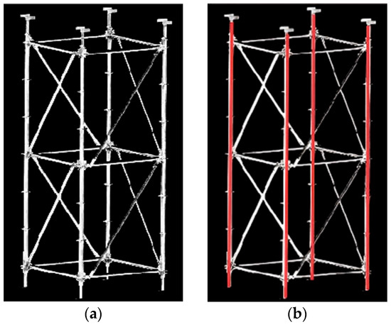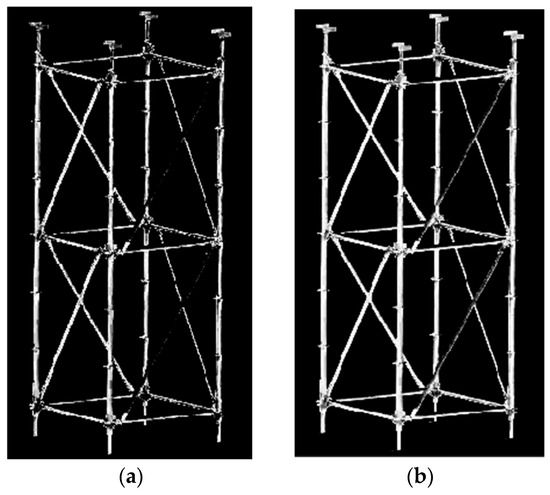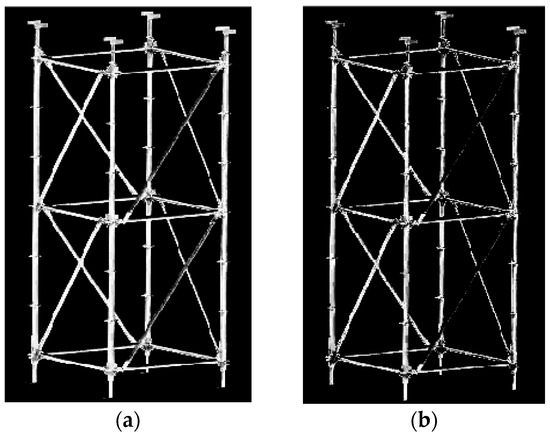 As shown in Figure 15, by performing structured local operations on the vertical members in the image of the cuplok scaffold system, the boundaries of the cuplok scaffold system are corroded inward, thereby eliminating or reducing the dimensions of the inclined and horizontal members and separating the contact areas between the vertical and other members. However, there is a phenomenon of disconnection in the image of the structural members after corrosion. Therefore, fine processing is required. Connect the disconnected target.
