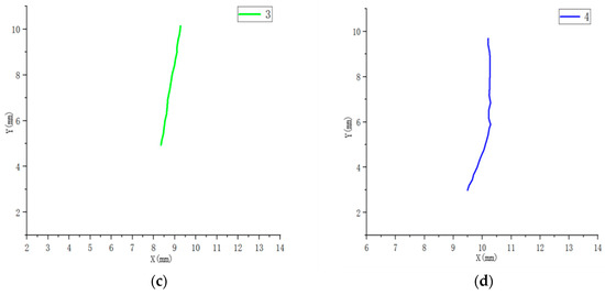 Curves of each member after processing: (a) Curve image of Rod 1 after processing; (b) curve image of Rod 2 after processing; (c) curve image of Rod 3 after processing; (d) curve image of Rod 4 after processing.