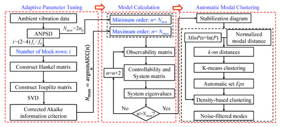 - Liu, W.; Yang, N.; Law, S.S.; Abruzzese, D.; Bai, F.; Cao, X. Automated Operational Modal Analysis with Adaptive DBSCAN-based Algorithm and Its Engineering Application. J. Civ. Struct. Health Monit. 2025. accepted. [Google Scholar] [CrossRef]