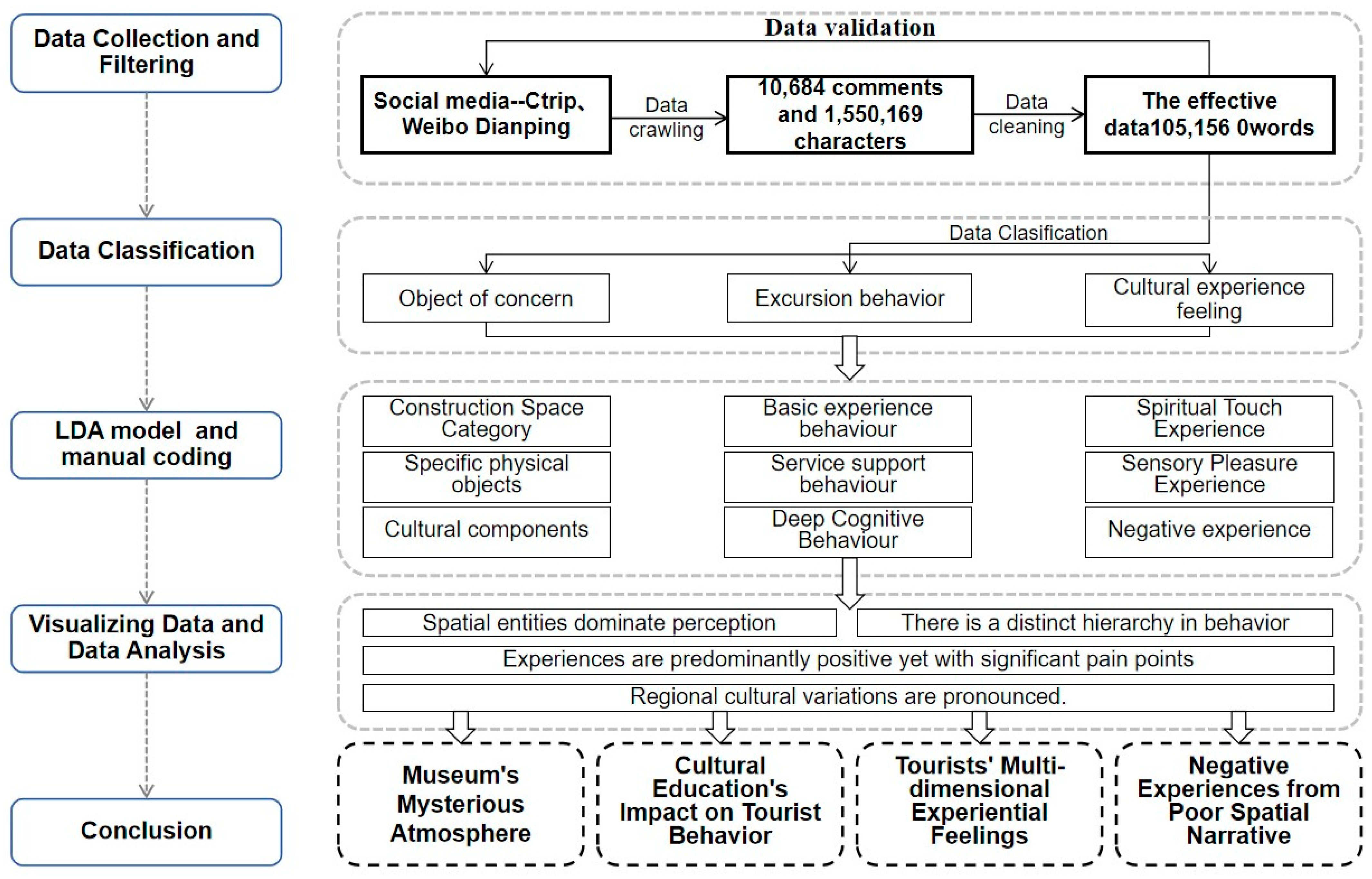 This study not only develops a framework for evaluating visitor behavior in heritage museums using social media data, but also provides empirical evidence and practical guidance for the sustainable revitalization of heritage spaces, the design-informed renewal of spatial practices, and the enhancement of museum experiences through improved architectural and facility management.