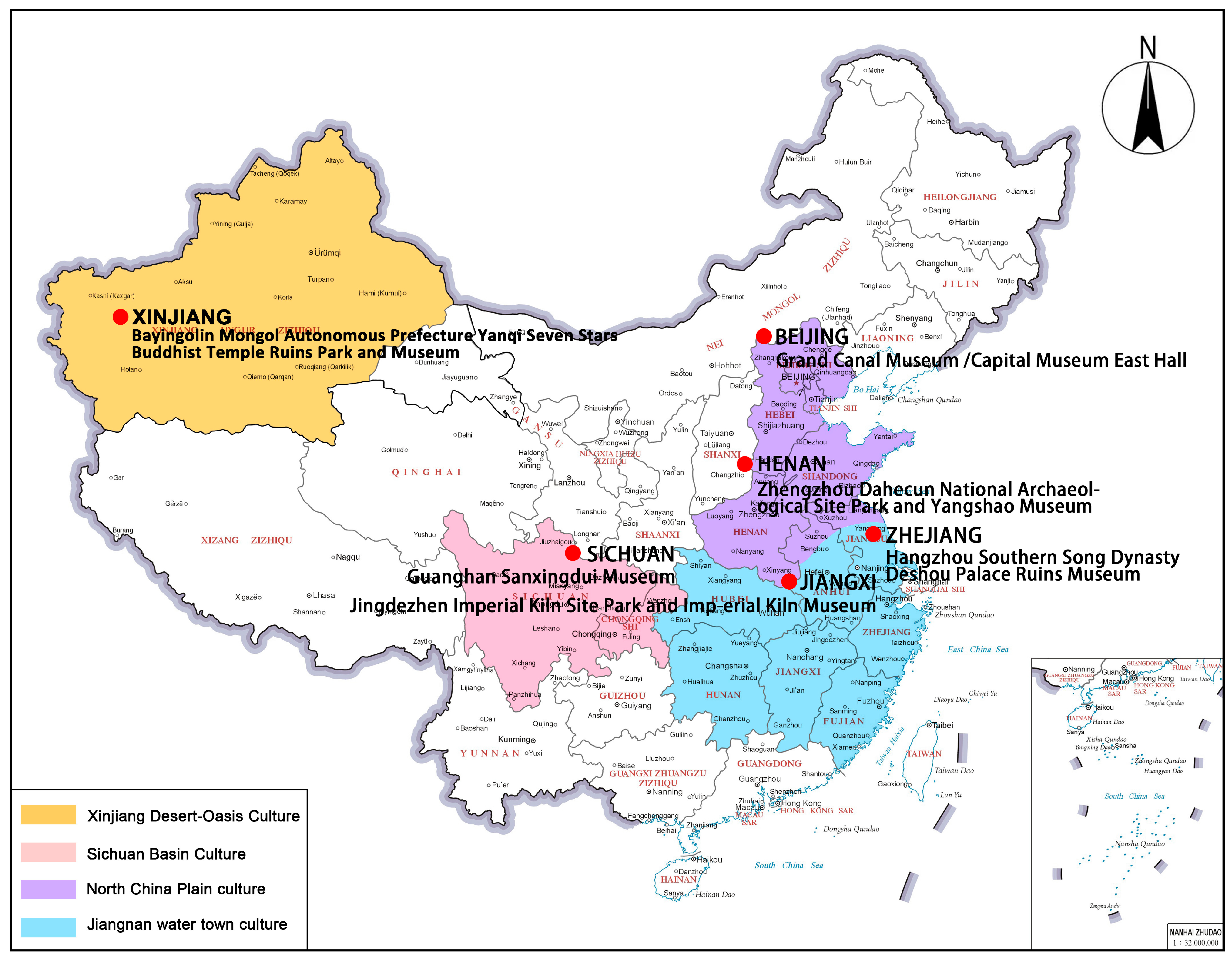 Firstly, regarding cultural and geographical representation, the cases span four distinct cultural regions that form a core transect of Chinese civilization: (1) Xinjiang Desert–Oasis Culture: Representing the multicultural interactions along the ancient Silk Road. (2) Sichuan Basin Culture: Exemplifying the unique and mysterious ancient Shu civilization of Southwest China. (3) North China Plain Culture: The heartland of Chinese civilization, featuring the Yellow River basin and the Grand Canal. (4) Jiangnan Waterfront Culture: Showcasing the refined aesthetic and water-town culture of southeastern China.