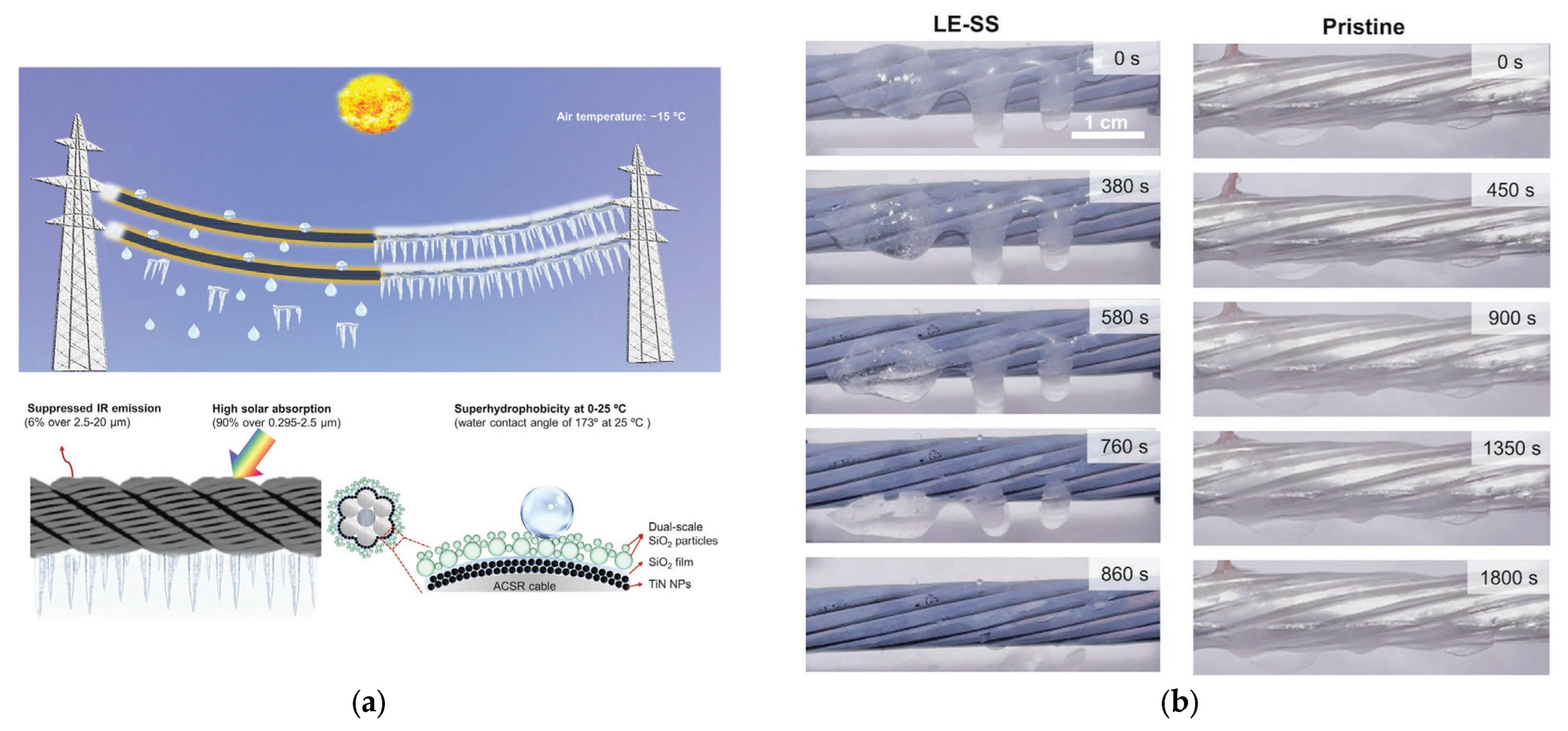 125. Li, Y.; Ma, W.; Kwon, Y.S.; Li, W.; Yao, S.; Huang, B. Solar deicing nanocoatings adaptive to overhead power lines. Adv. Funct. Mater. 2022, 32, 2113297. [Google Scholar] [CrossRef]