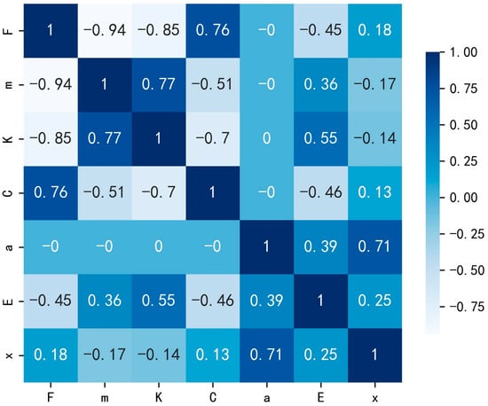 The final selected input variables are: story mass (m), story stiffness (K), story load-bearing capacity (C), peak acceleration (a), story energy consumption (E), and maximum story displacement (x). These six parameters provide a non-redundant, physically meaningful, and efficient feature set for machine learning model training.
