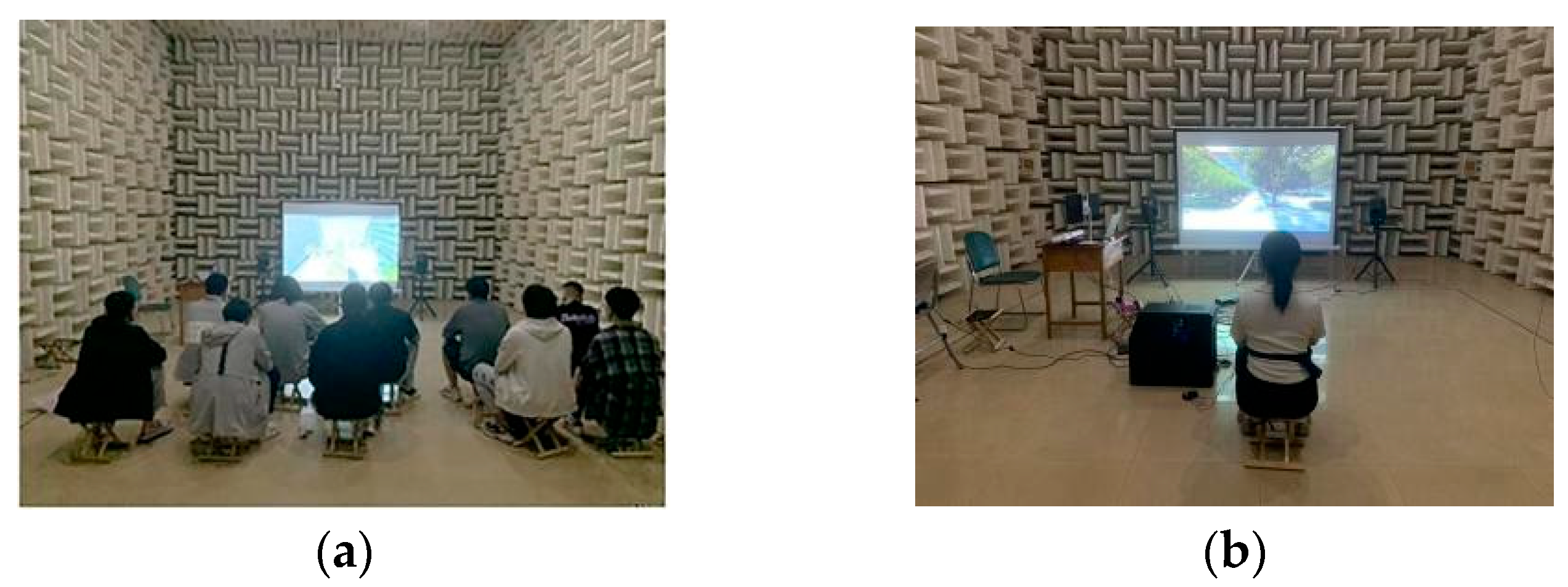 In summary, soundscapes in university campus teaching areas are closely related to students’ learning activities and can facilitate their mental and physical recovery. However, research on campus teaching area soundscapes remains insufficient, and studies on the factors and mechanisms influencing soundscape restorativeness are relatively scarce. Therefore, based on restorative soundscape theory, this study integrates field surveys and psychological and physiological experiments to examine the characteristics and current status of soundscape restorativeness in university campus teaching areas. It further explores how spatial visual environments, sound source types, and the SNR—under the interaction of visual and auditory factors—affect the degree and patterns of soundscape restoration, providing insights for improving spatial environmental quality and promoting students’ mental and physical recovery.