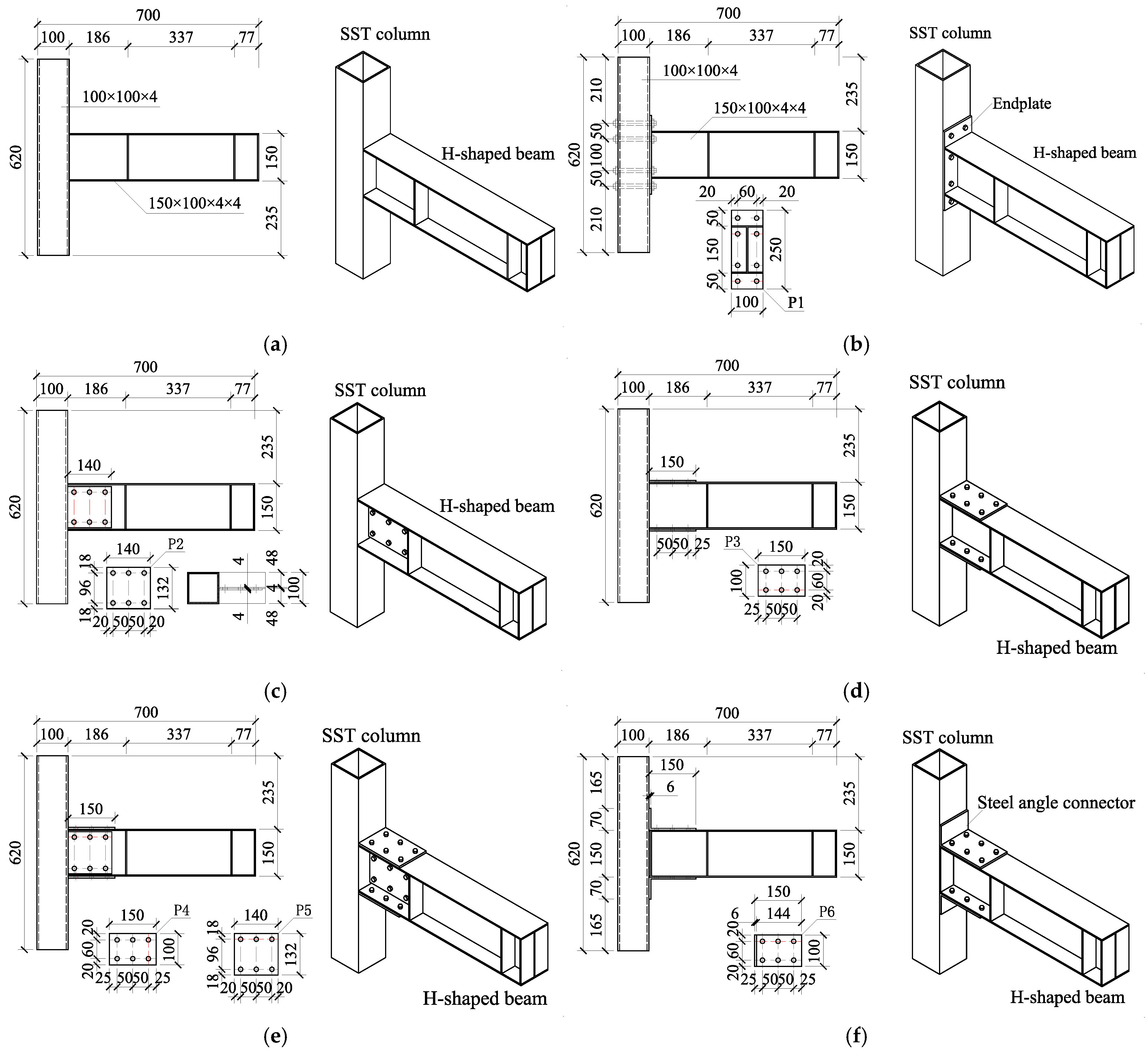 | J6-H & J6-F | Angle connector plate P6 is welded to the column | The upper and lower flanges of the beam are connected to the angle connector plate P6 with bolts | 2.80 |
