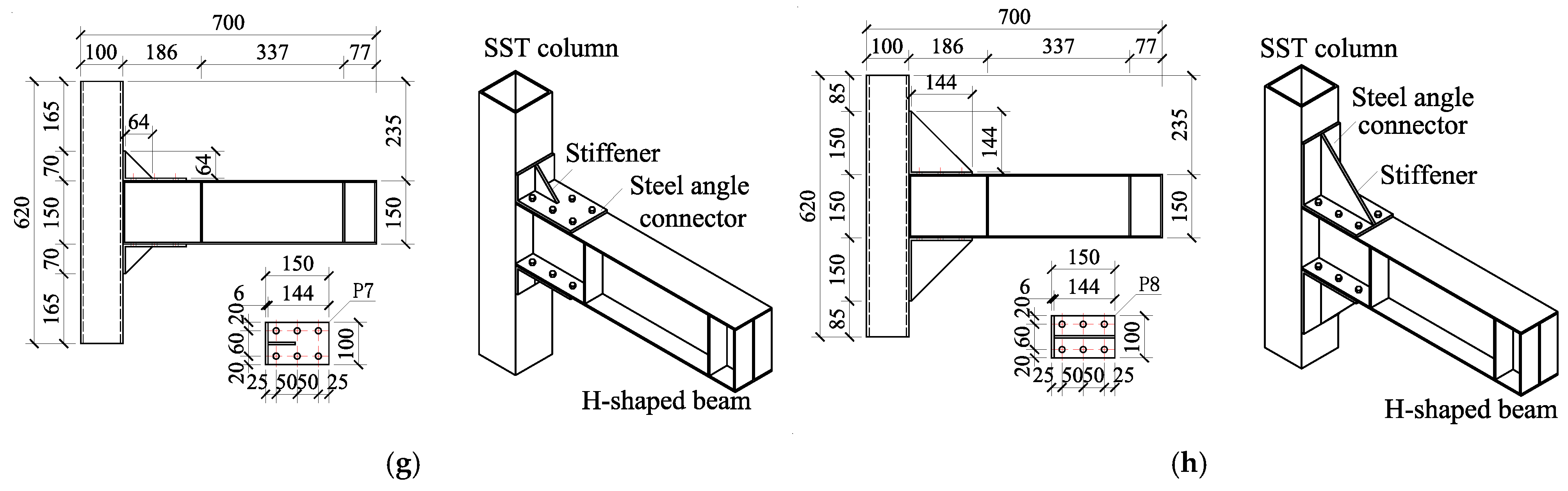 | J7-H & J7-F | Angle connector plate P7 is welded to the column | The upper and lower flanges of the beam are connected to the angle connector plate P7 with bolts | 2.99 |