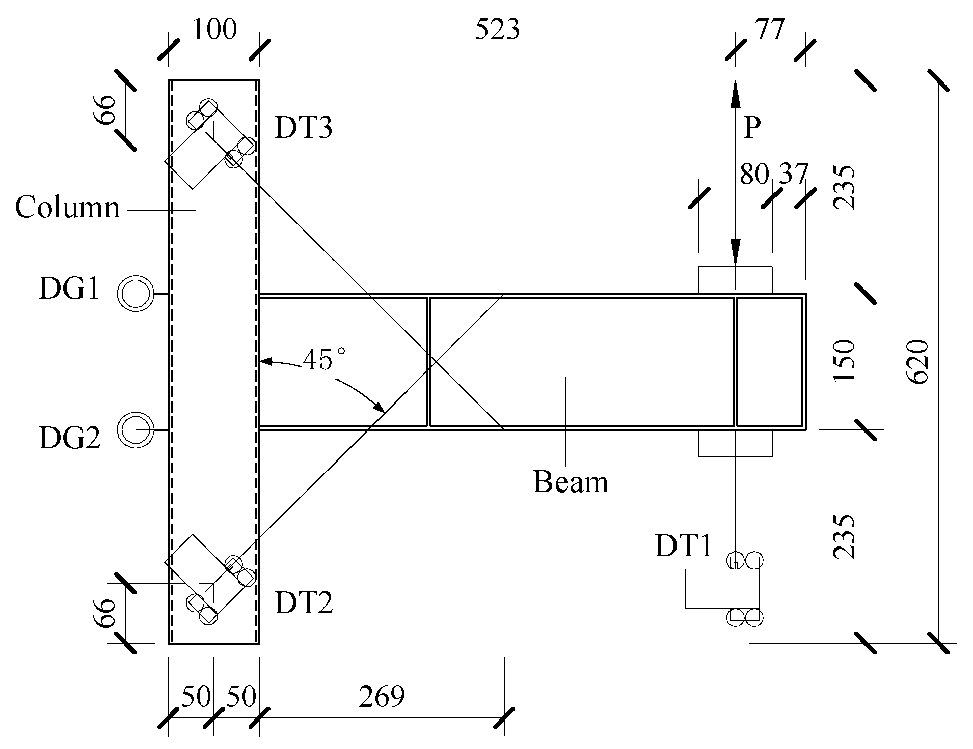 | J2-H & J2-F | The beam flange and web are welded to the end plate P1 | End plate P1 and the column are connected with bolts | 2.62 |