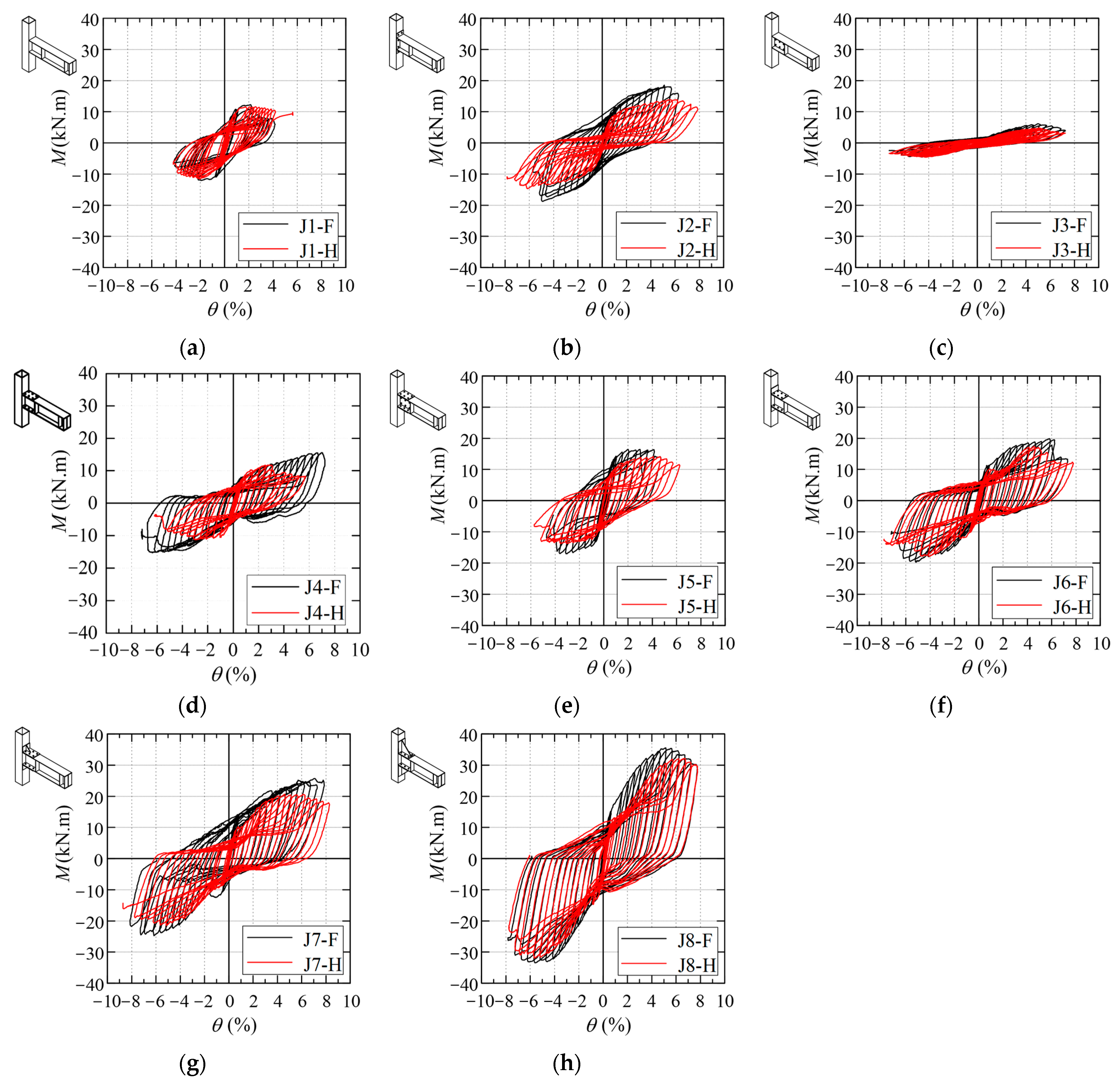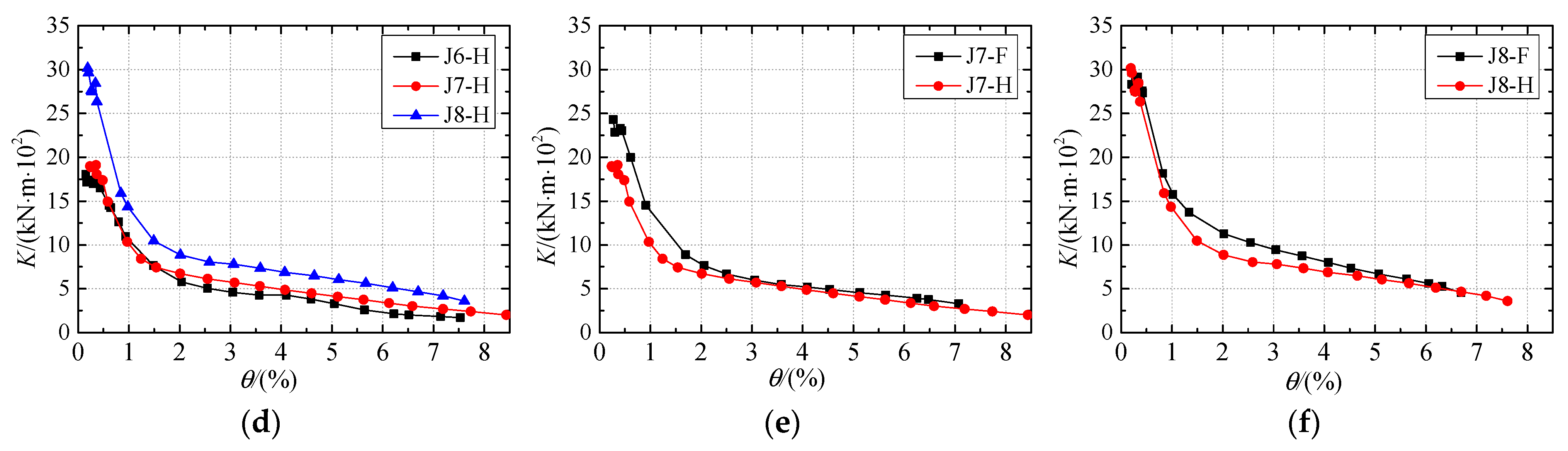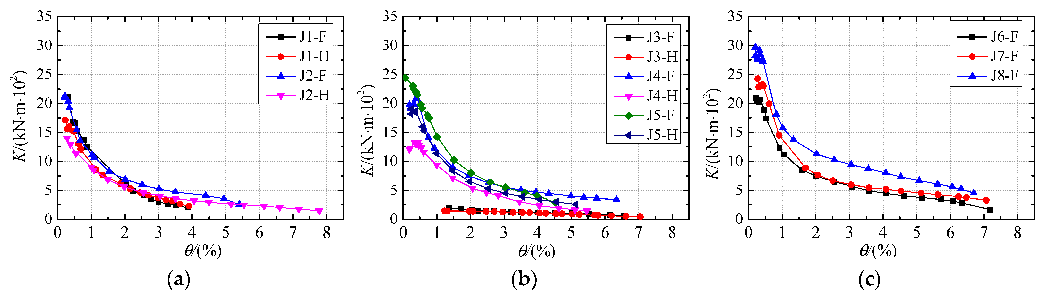 | Specimens | R0 (kN·m/rad) | Mu (kN·m) | EIb/lb (kN·m) | R0lb/EIb | Mu/Mbp | Joint Classification |