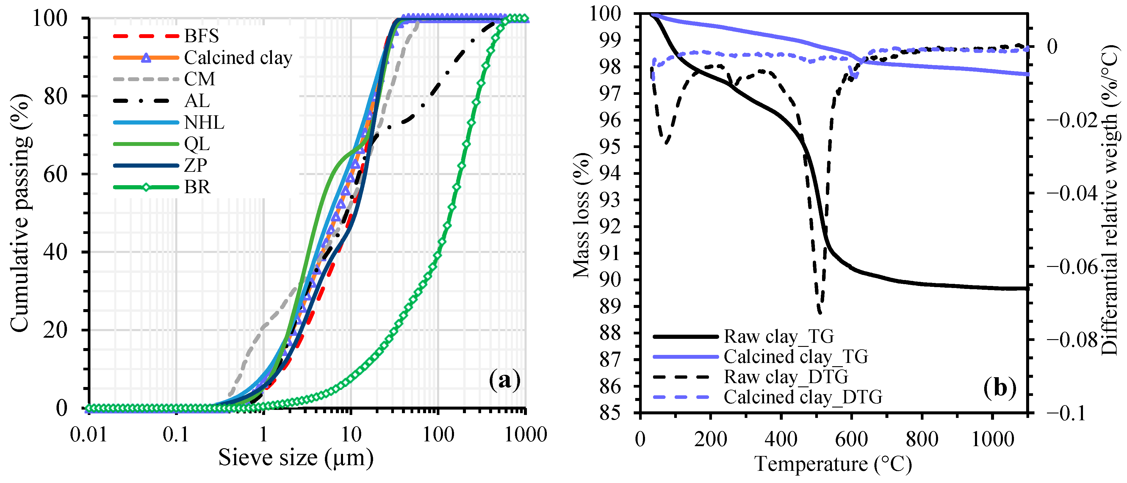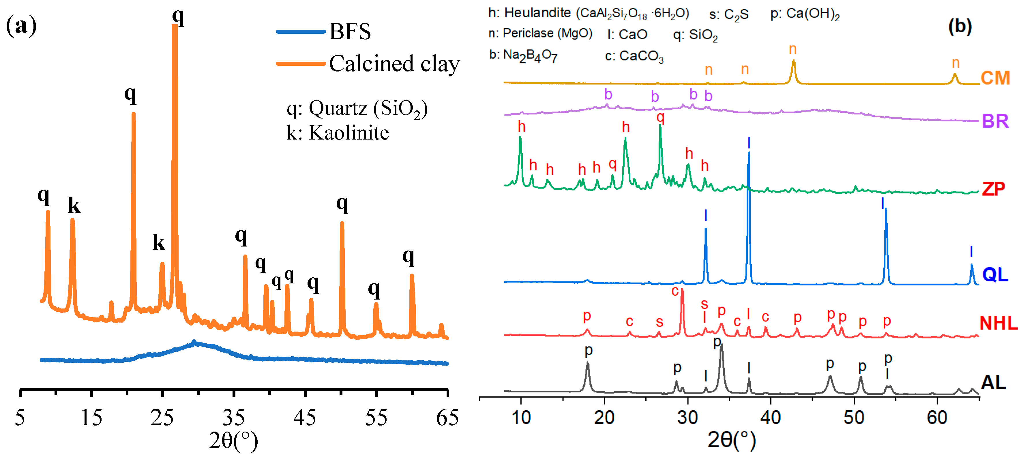 | Oxide Composition (%) | BFS | Calcined Clay | CM | AL | NHL | QL | ZP | BR |
