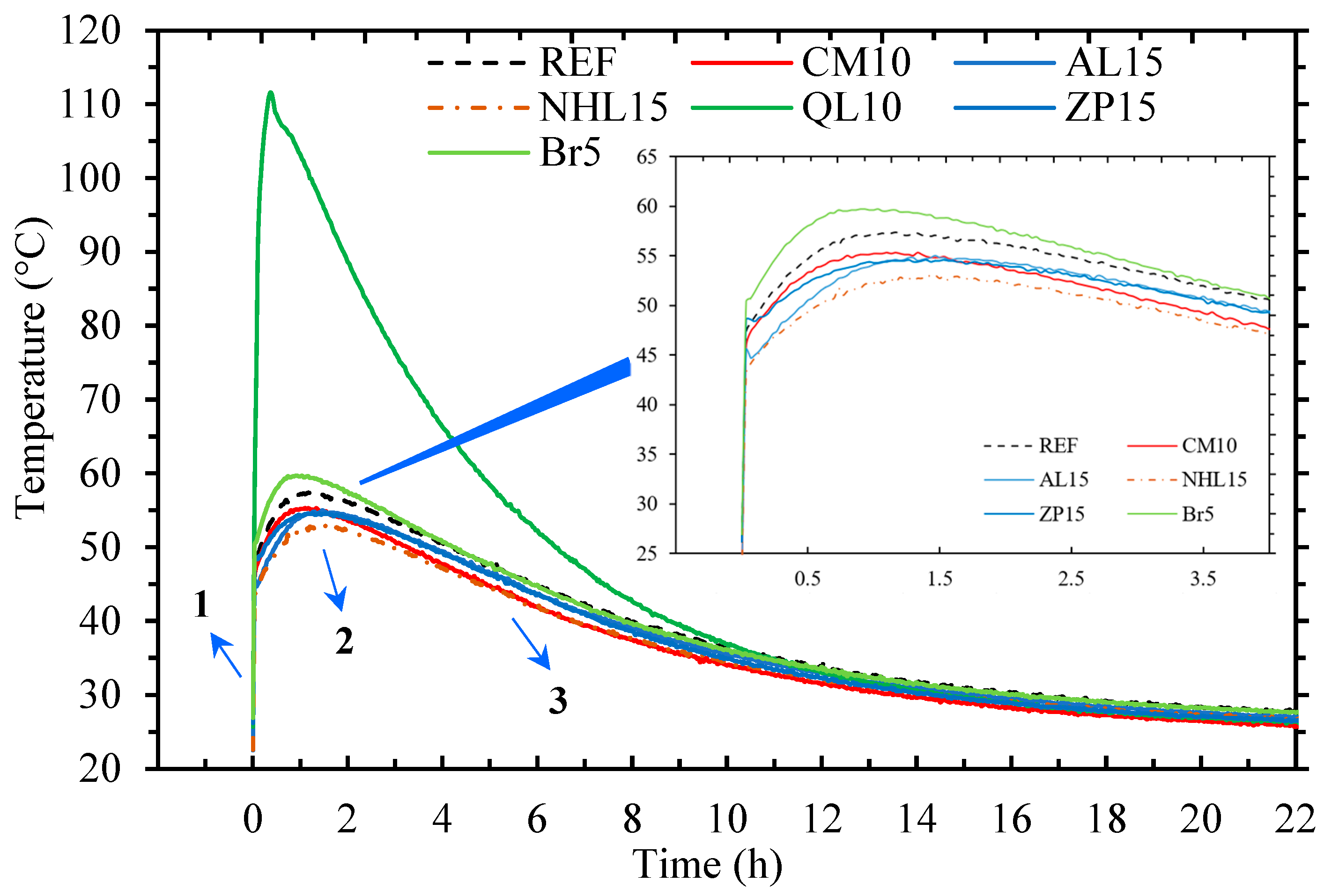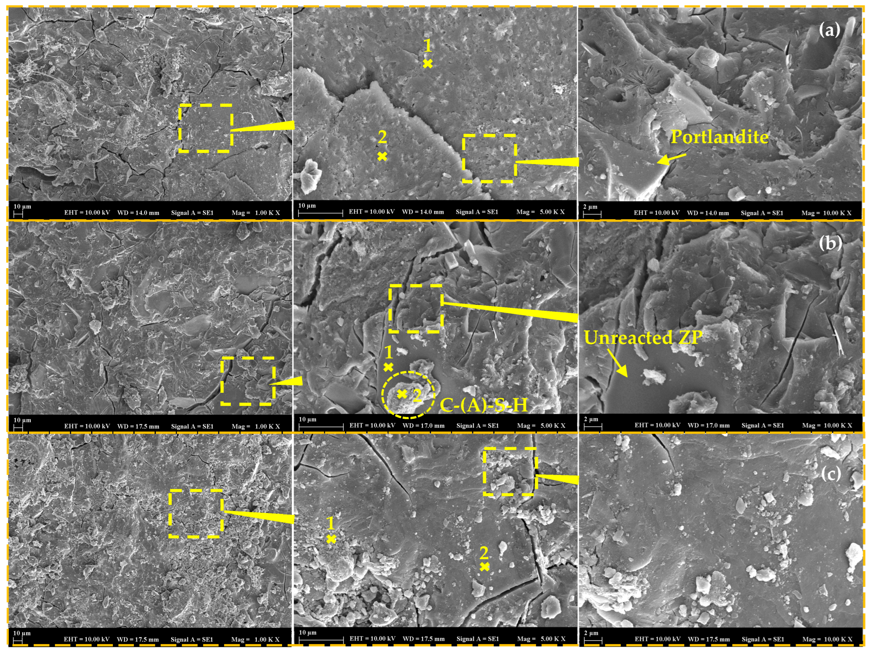 - Liu, C.; Chen, D.; Cheng, Z.-Q. Effect of zeolite powder on the hydration and microstructure evolution of hardened cement paste at low water-binder ratio. Rev. Romana Mater. 2020, 50, 331–336. [Google Scholar]