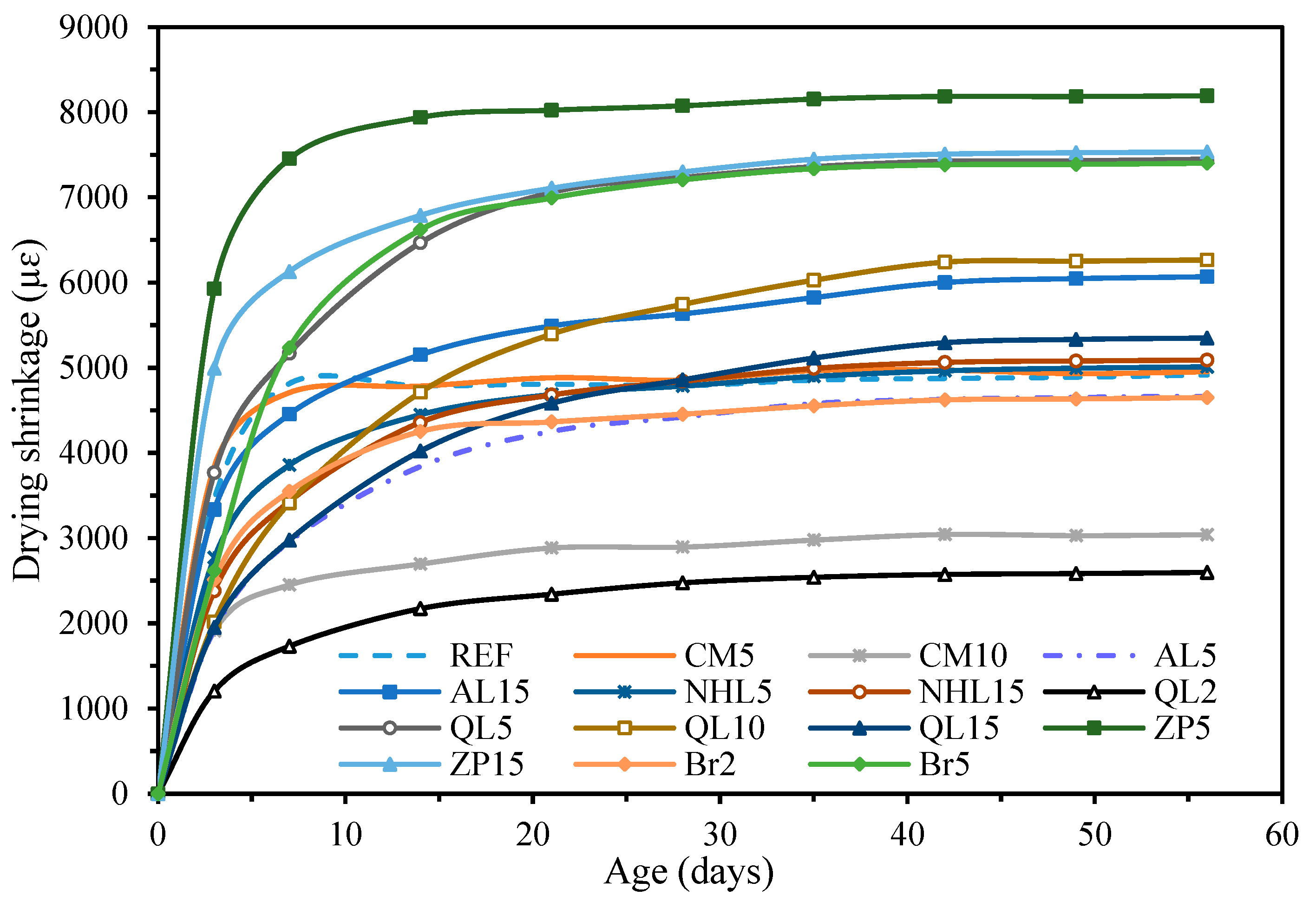 - Zheng, D.; Ji, T.; Wang, G. Effect of CaO on the Autogenous Shrinkage of Alkali-Activated Slag Mortar. Adv. Mater. Sci. Eng. 2021, 2021, 9918834. [Google Scholar] [CrossRef]
