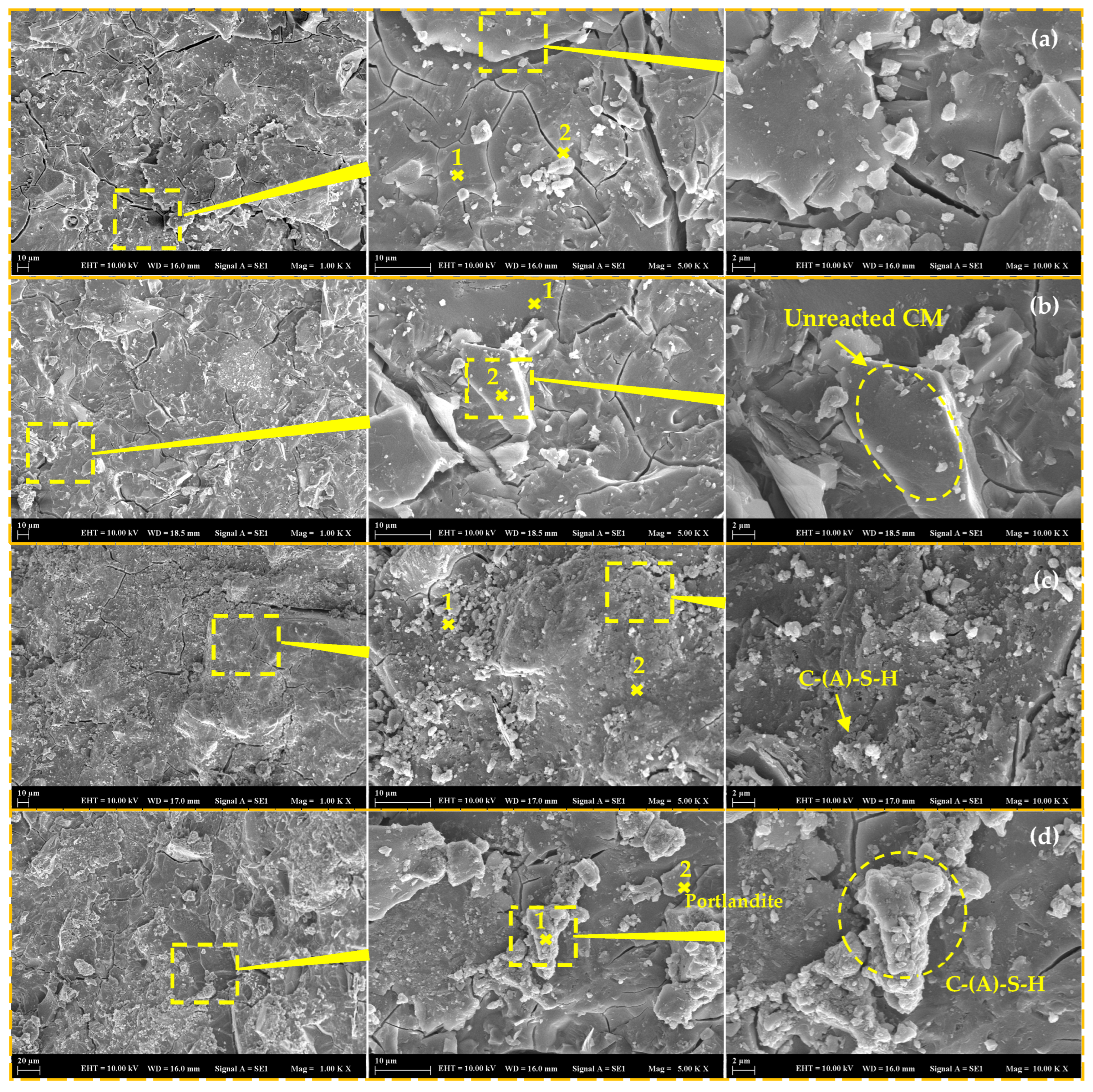 - Ma, H.; Dai, E.; Fu, H.; Xu, Z.; Du, E.; Gu, L.; Feng, J. Hydration Kinetics and Performance of MgO-Activated Slag Binder with Available Carbonate and Silicate. J. Mater. Civ. Eng. 2025, 37, 04025126. [Google Scholar] [CrossRef]