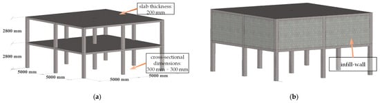 Pure RC frame and infill wall RC frame structural entities: (a) pure frame structural entities; (b) infill wall frame structural entities.