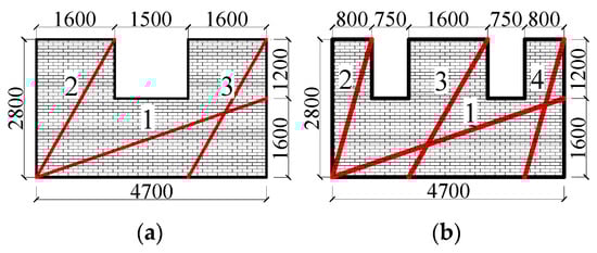 Load transfer route when opening the window: (a) W-13.7%-1; (b) W-13.7%-2.