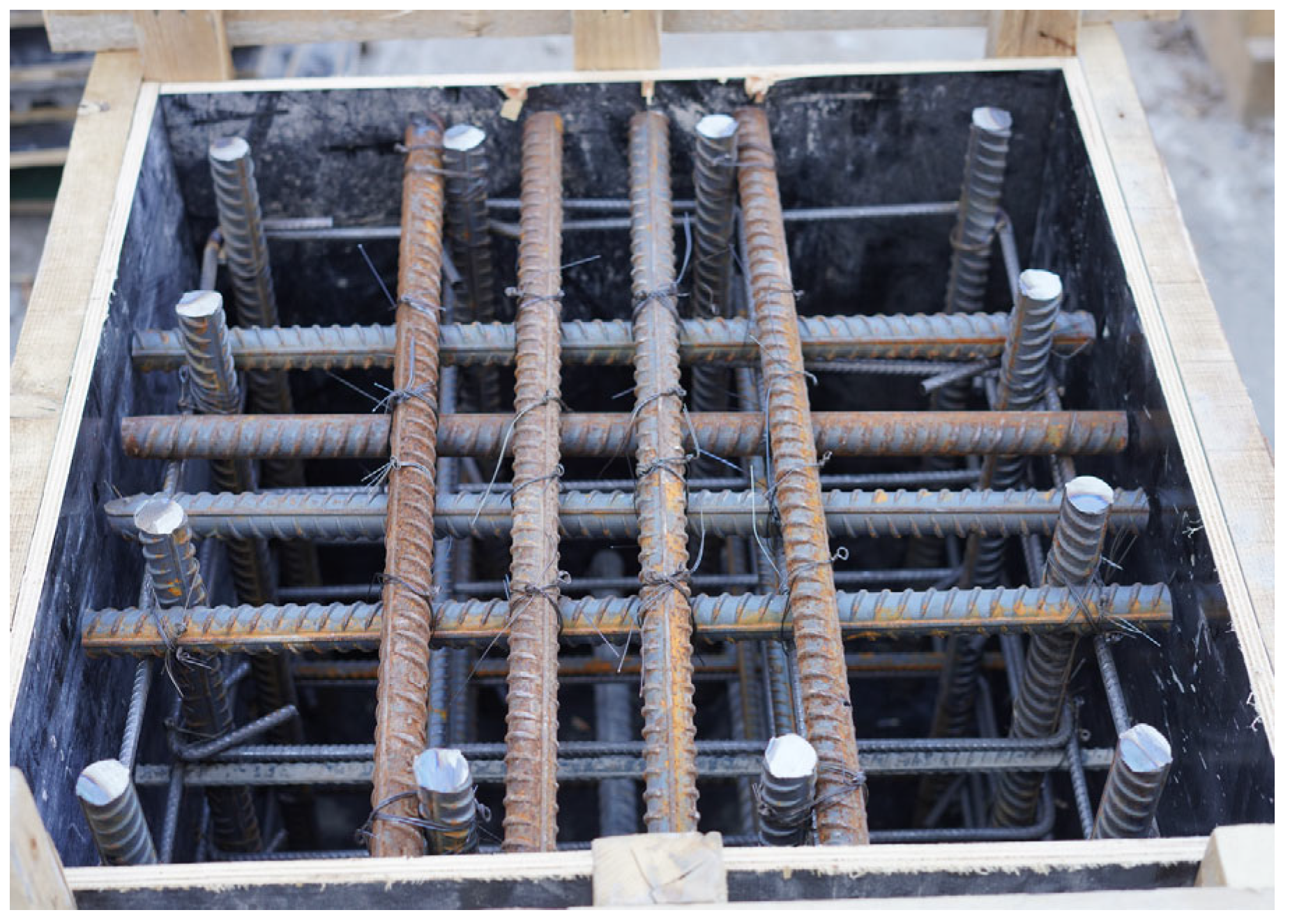 - Based on comprehensive experimental and numerical studies, to avoid potential void defects in practical concrete pouring projects, it is recommended that the number and diameter of joint longitudinal bars be selected reasonably and the spacing of column stirrups be increased appropriately. In addition, it is recommended to appropriately reduce the maximum coarse aggregate particle size and choose concrete with better fluidity and filling ability.