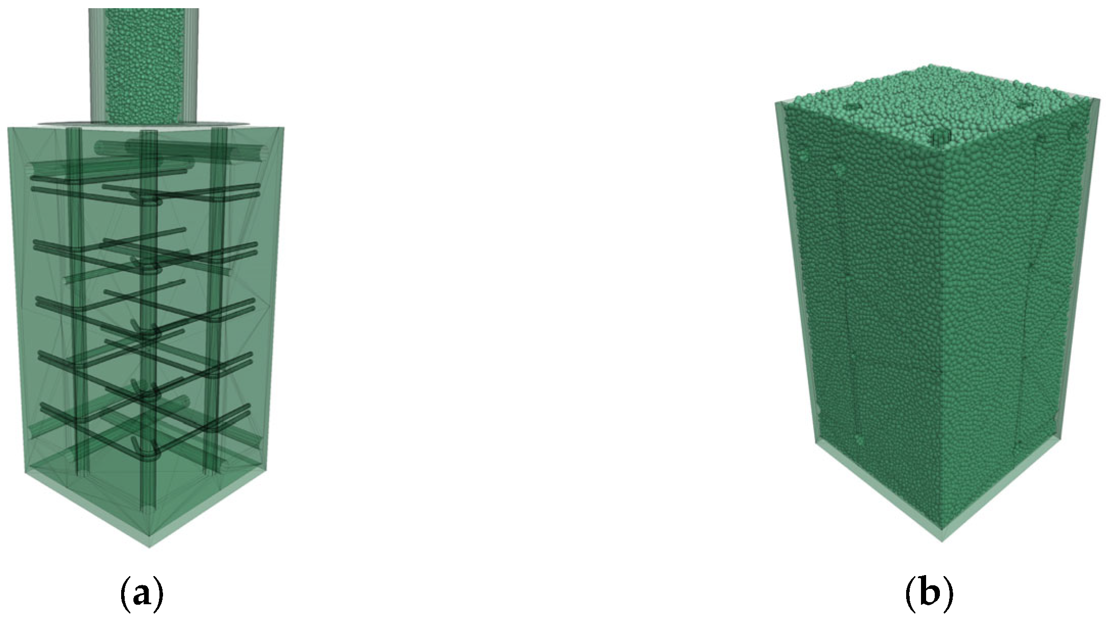 - Noor, M.A.; Uomoto, T. Numerical simulation of fresh concrete(1): Three-dimensional discrete element model for fresh concrete. Seisan Kenkyu. 1999, 51, 169–172. [Google Scholar]
