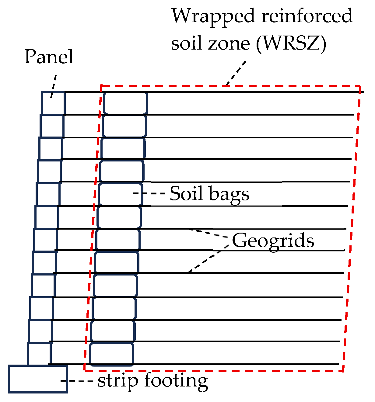 - Gao, S.; Xiao, C.Z.; Han, J.; Wang, Z.H. Lateral displacements of geosynthetic-reinforced soil walls in a tiered configuration. J. Geotech. Geoenviron. Eng. 2022, 148, 04022066. [Google Scholar] [CrossRef]