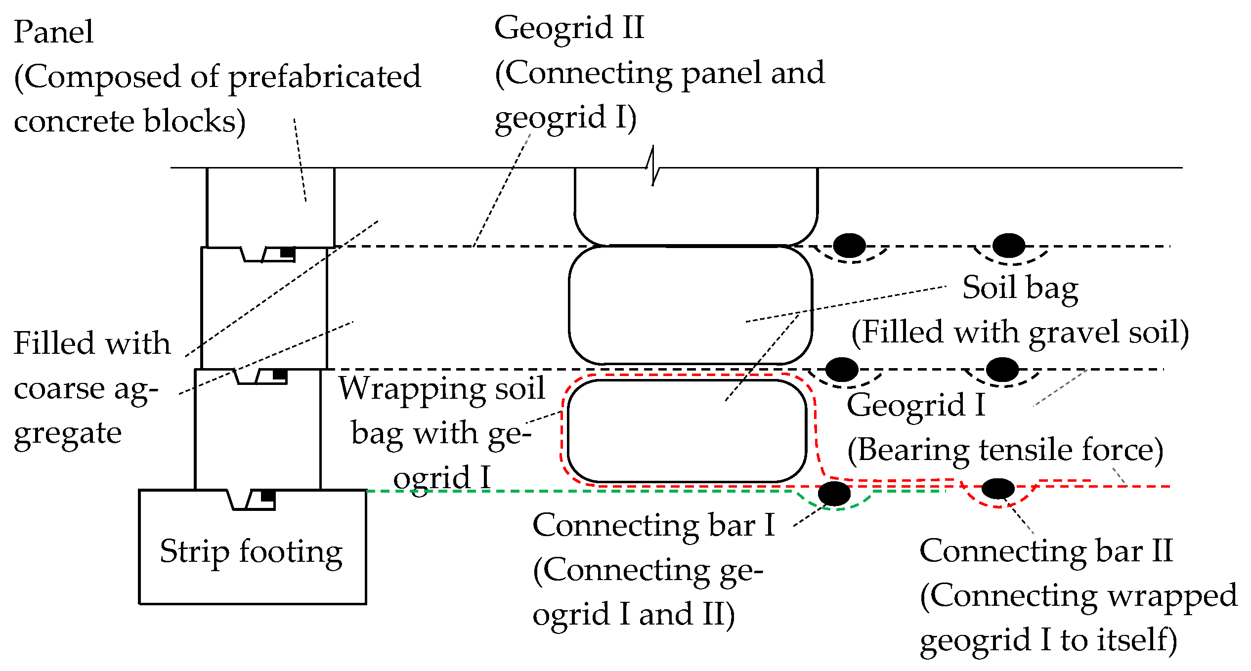 - Kim, Y.J.; Jung, H.S.; Lee, Y.J.; Oh, D.W.; Son, M.; Yoon, H.H. Behaviour analysis of reinforced soil retaining wall according to laboratory scale test. Appl. Sci. 2020, 10, 901. [Google Scholar] [CrossRef]