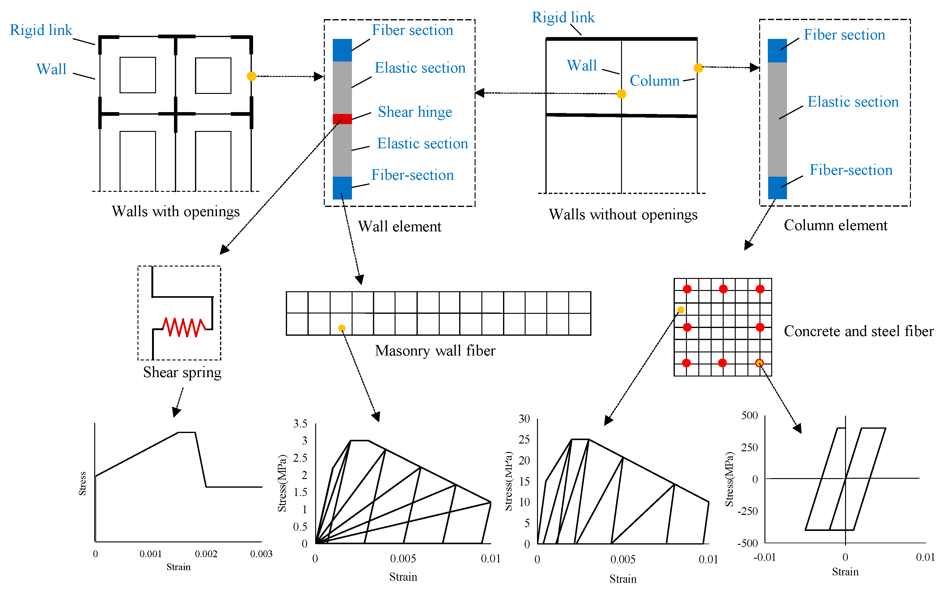Figure 5. Schematic representation of mechanical behavior of structural components.