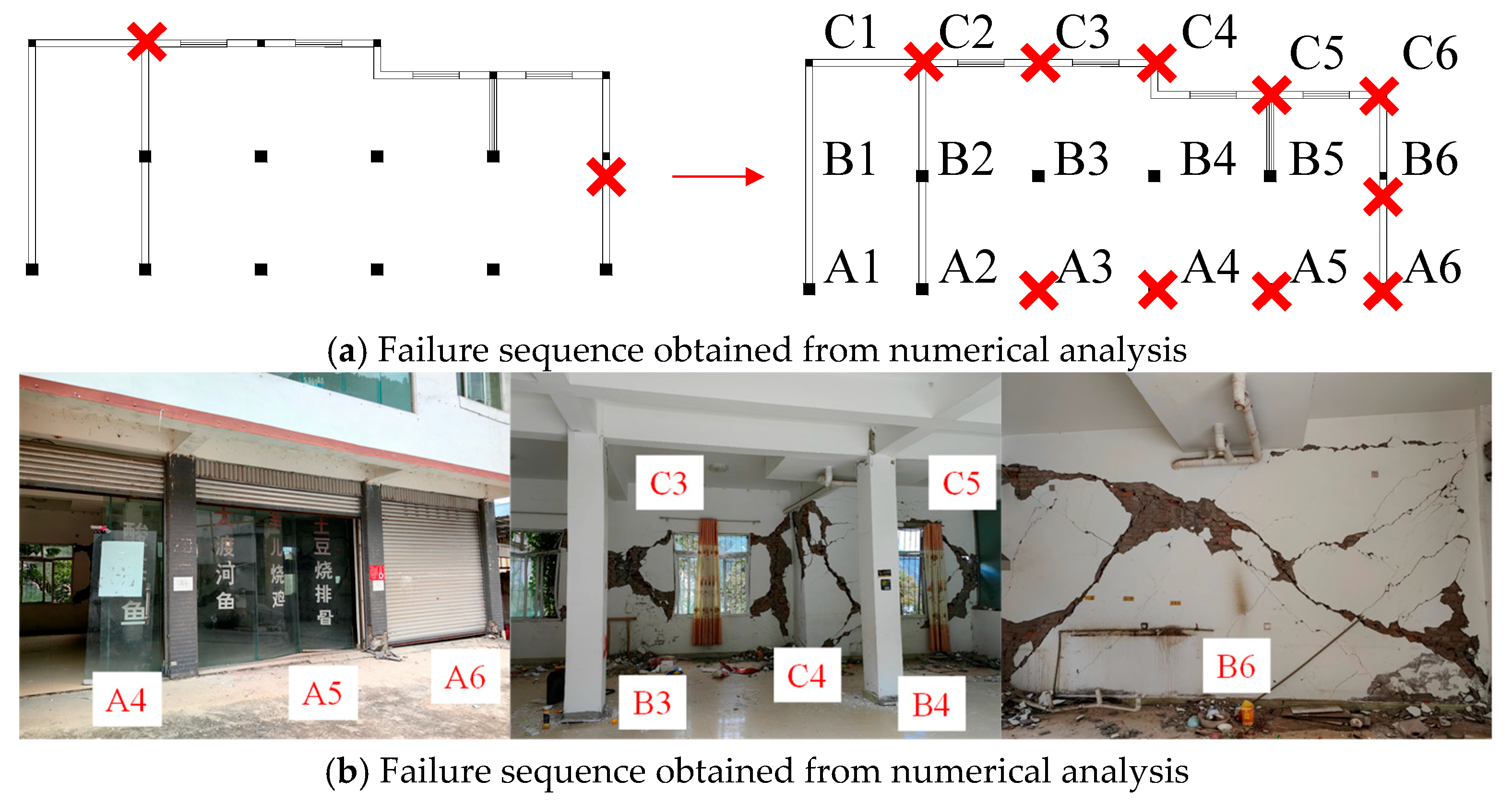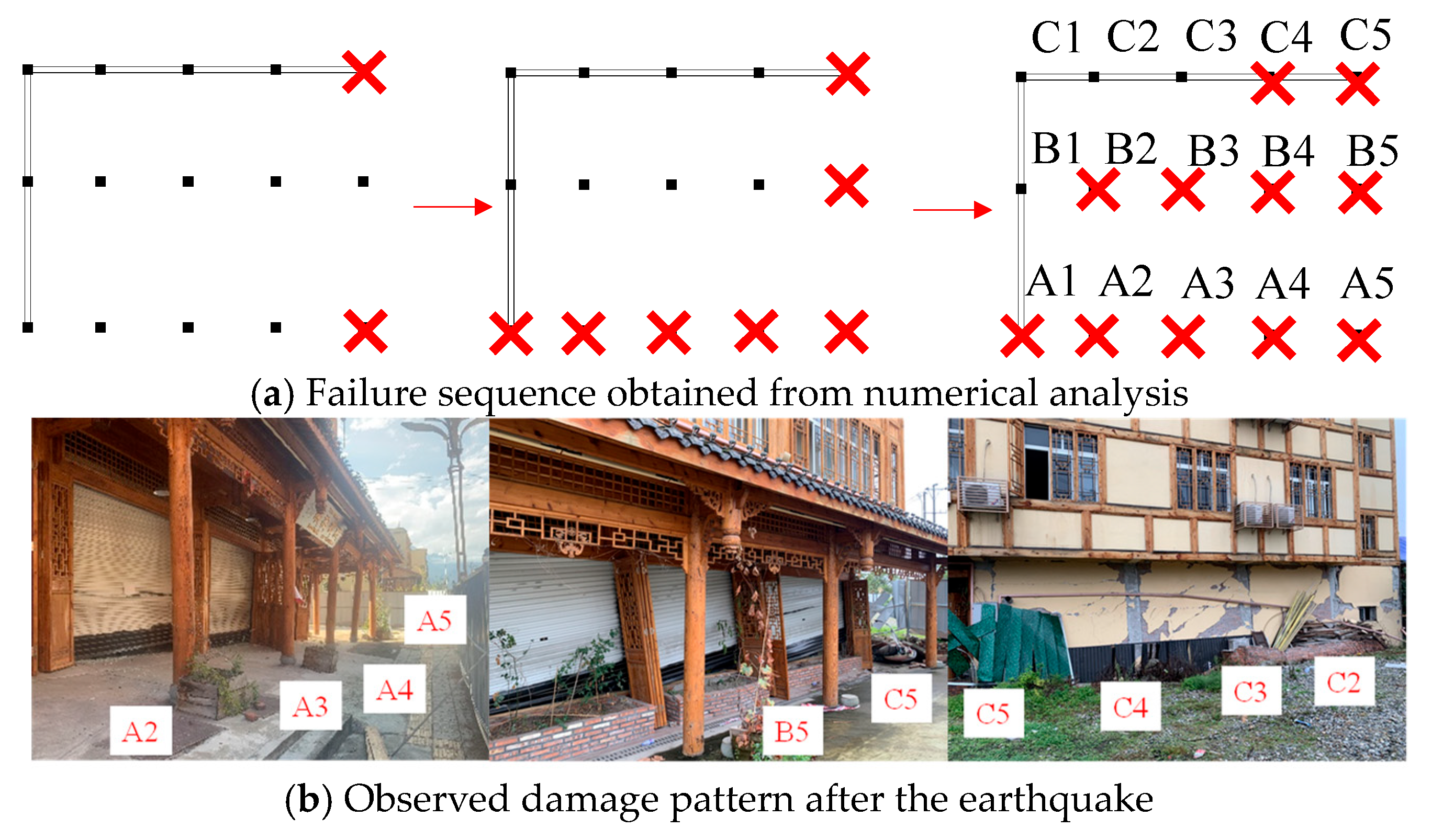 Figure 13. Failure sequence of Building A.