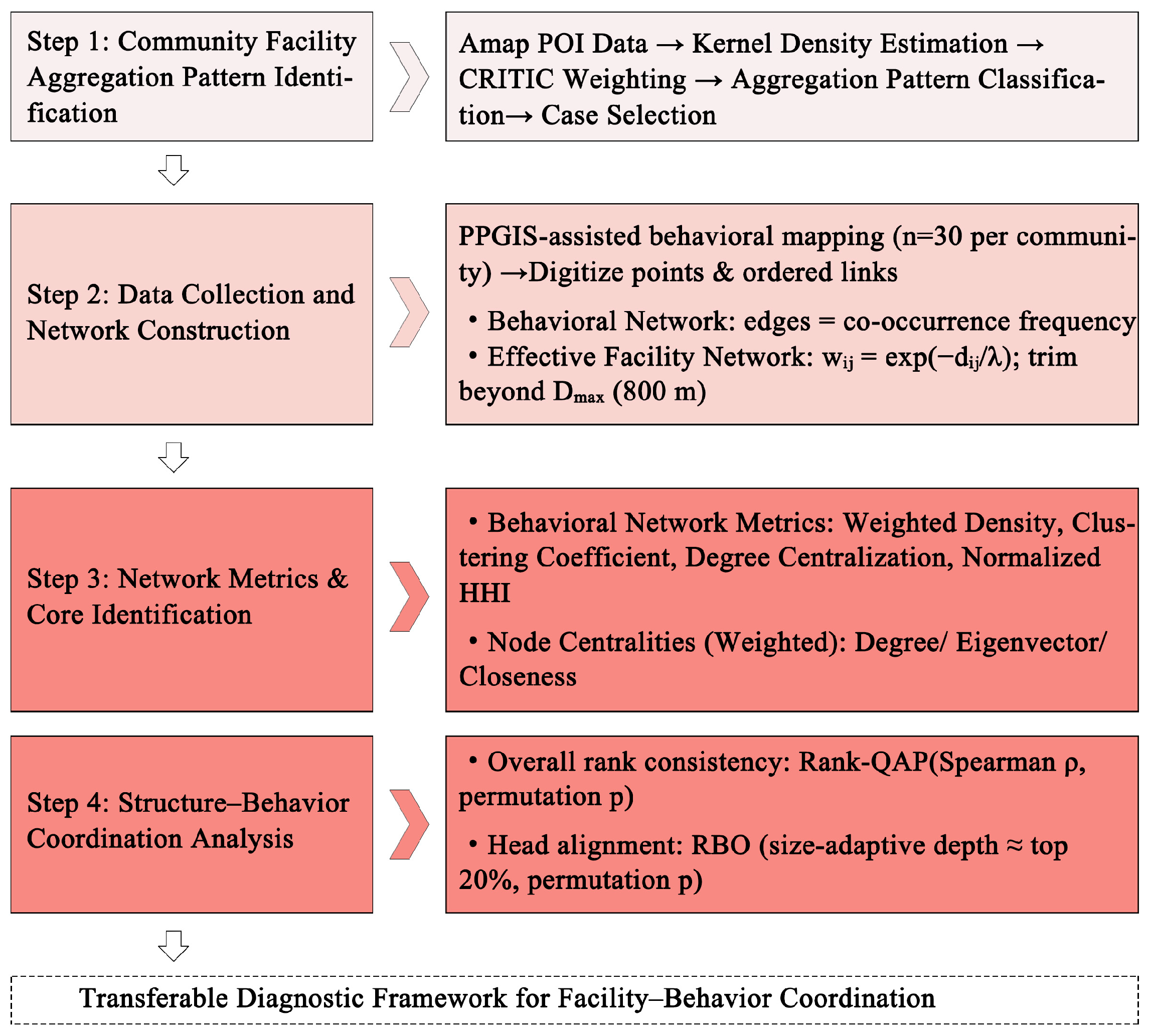 Figure 1. A methodological framework for diagnosing structure–behavior coordination in community facilities.