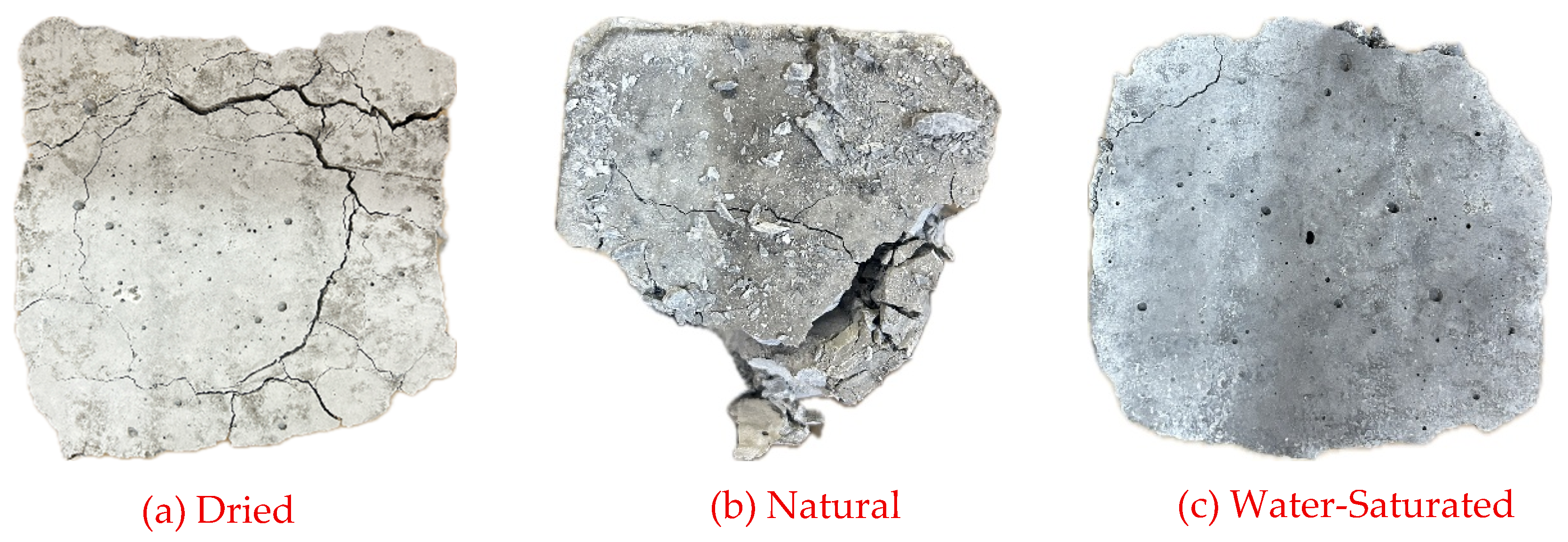 3.3. Comparison of Concrete Properties at Different Moisture Contents