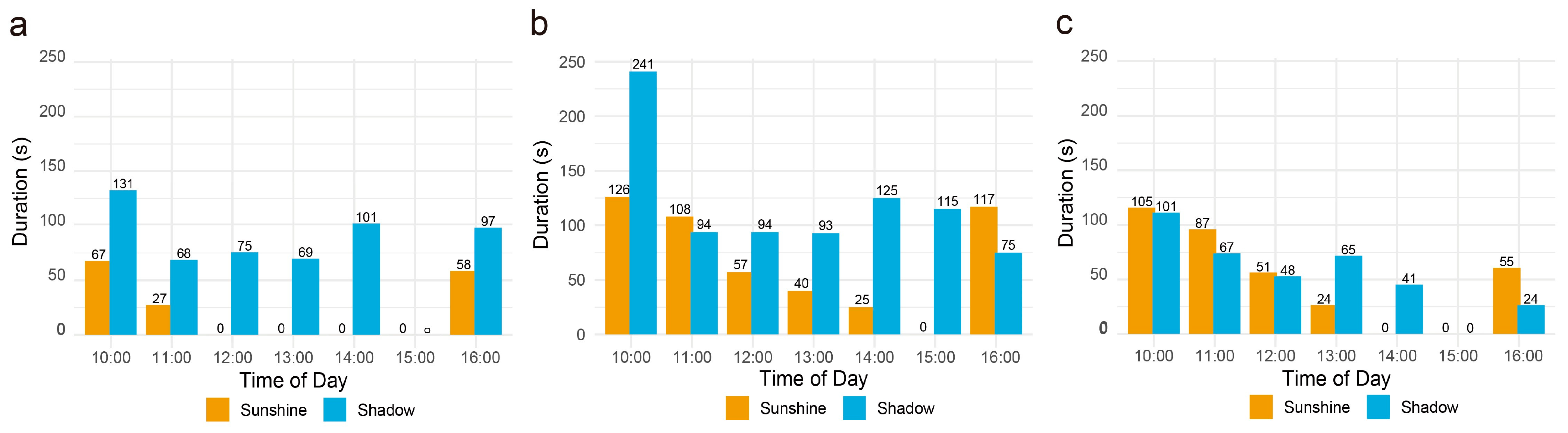 3.1.1. Crowd Distribution in Sunlight and Shade