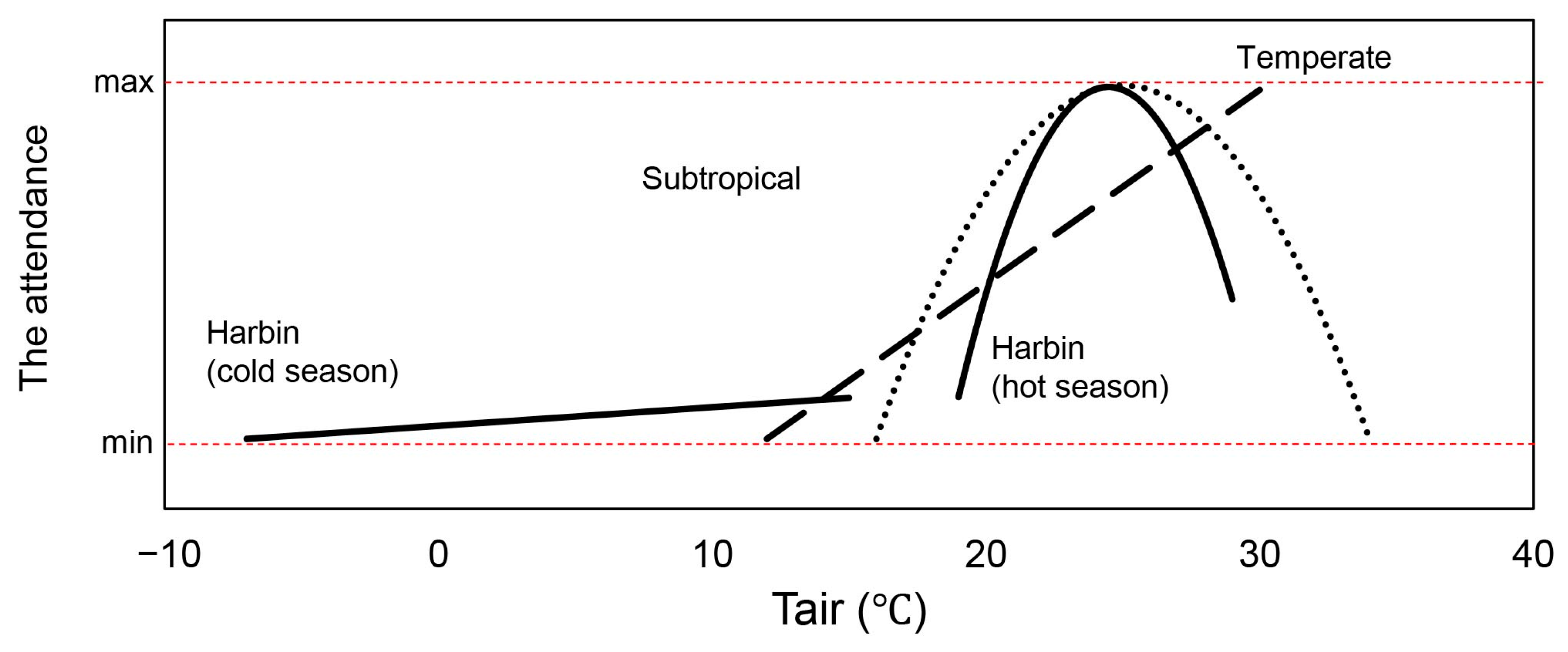 - In hotter environments, both attendance and in Harbin are comparable to those in other regions with higher annual temperatures, particularly subtropical regions.