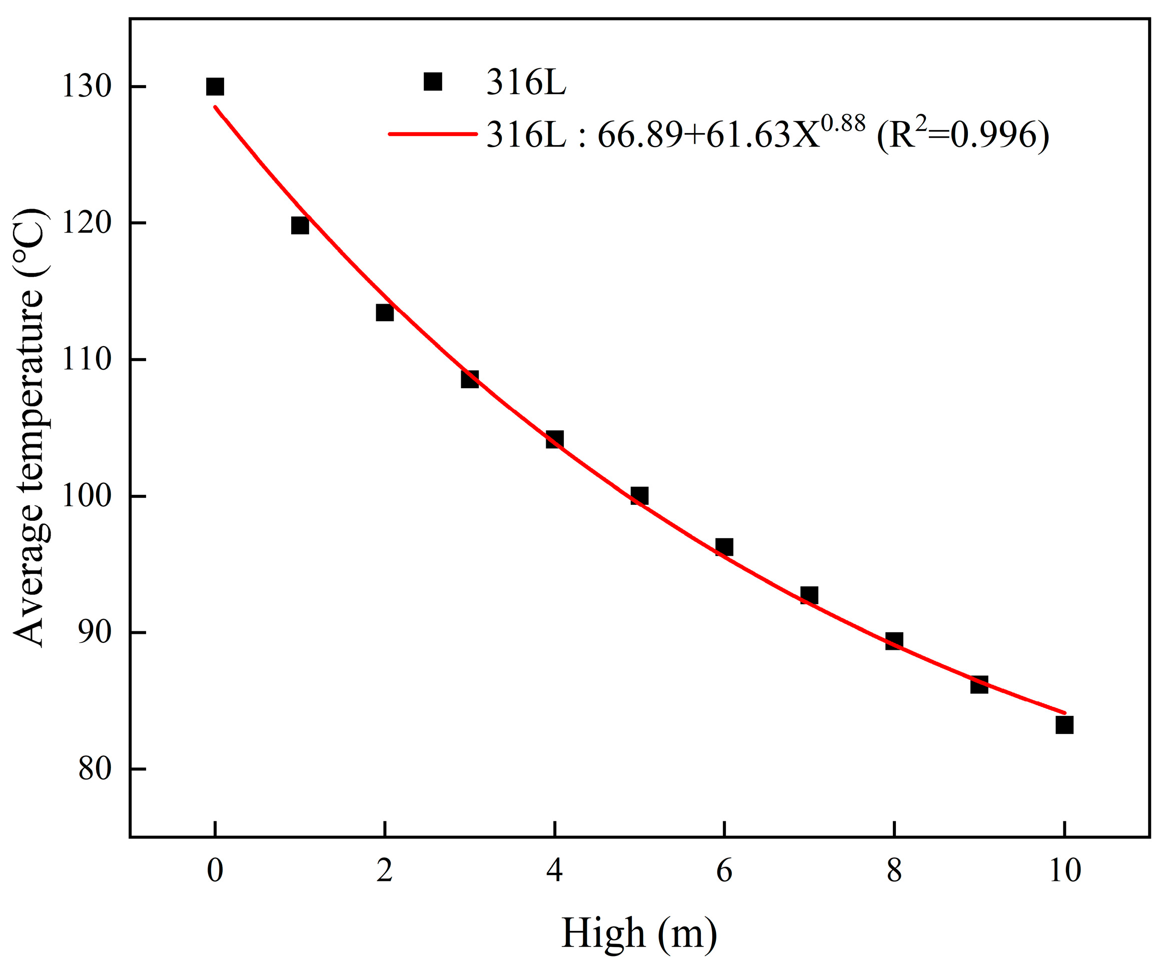 | High (m) | Average Outlet Temperature (°C) | ||||||