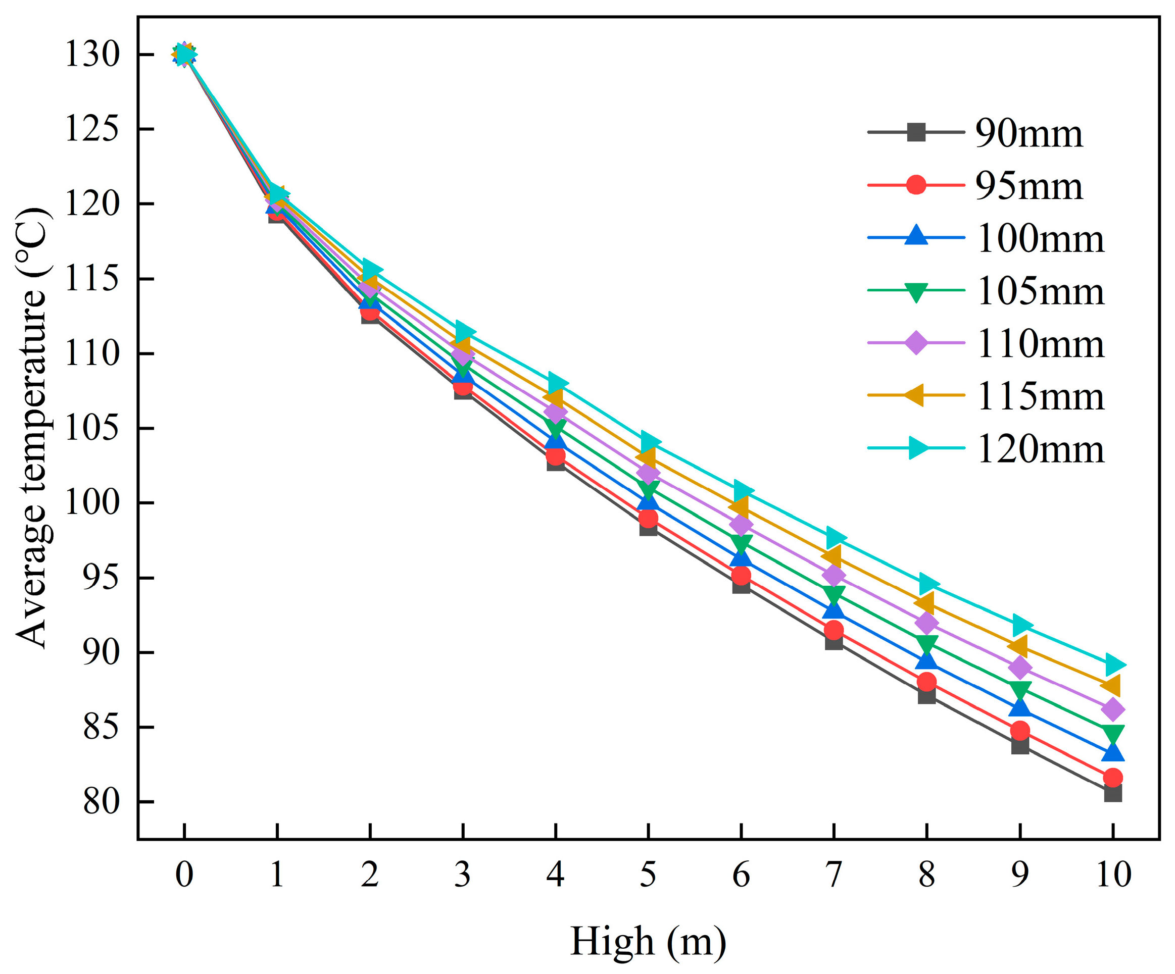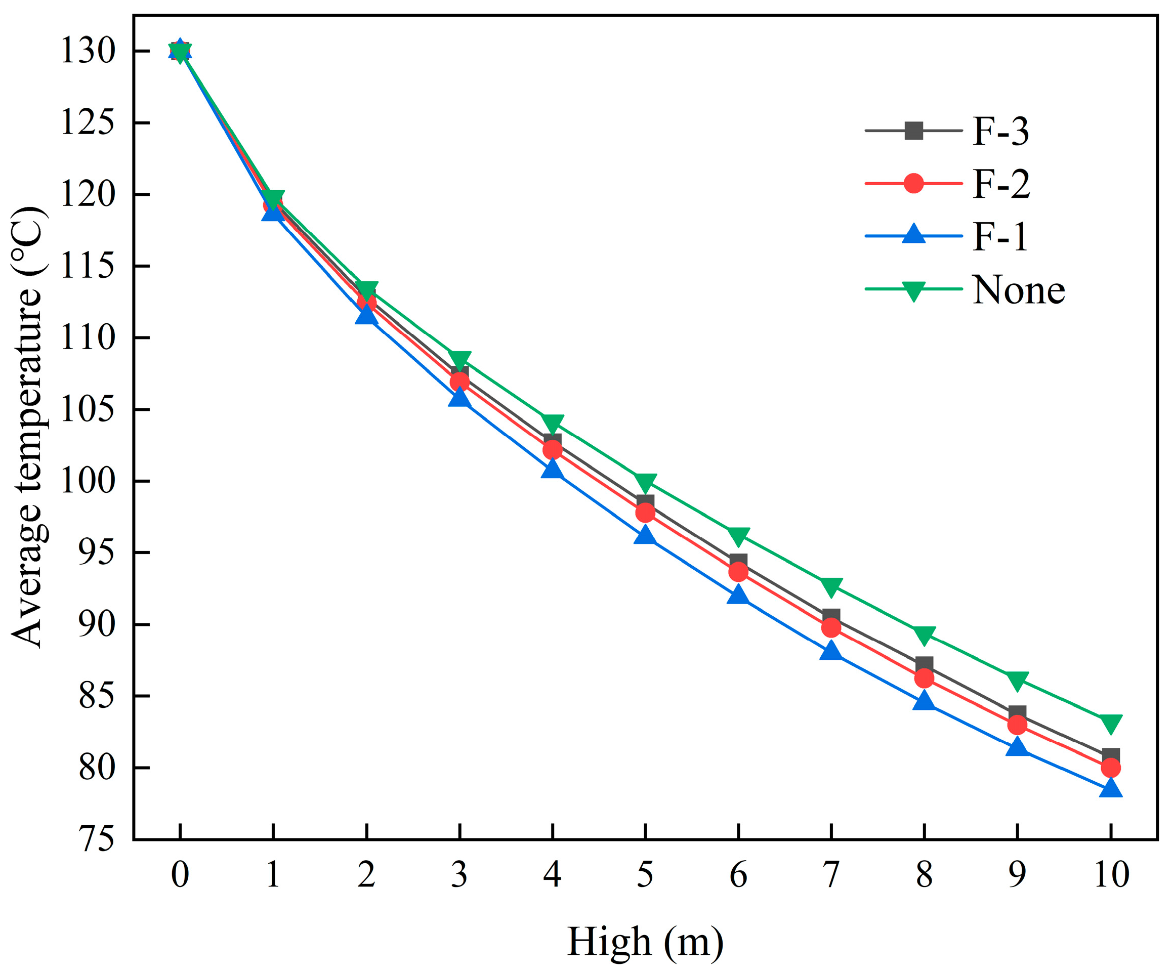 | High (m) | Average Outlet Temperature (°C) | ||||