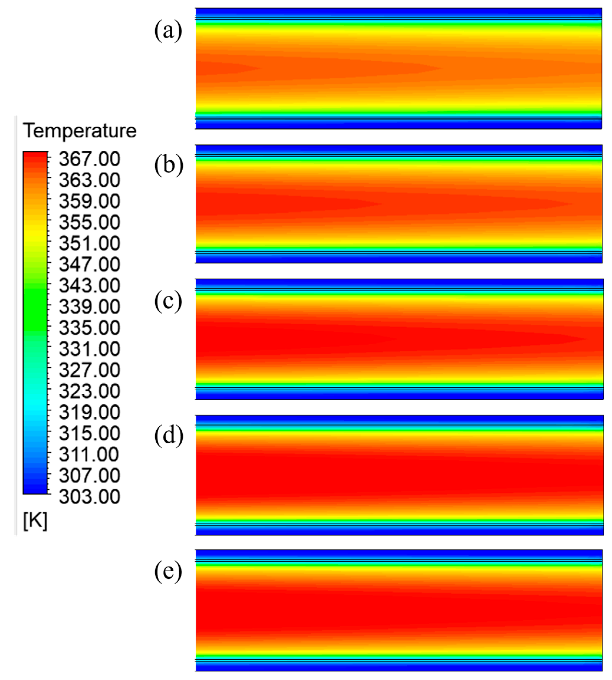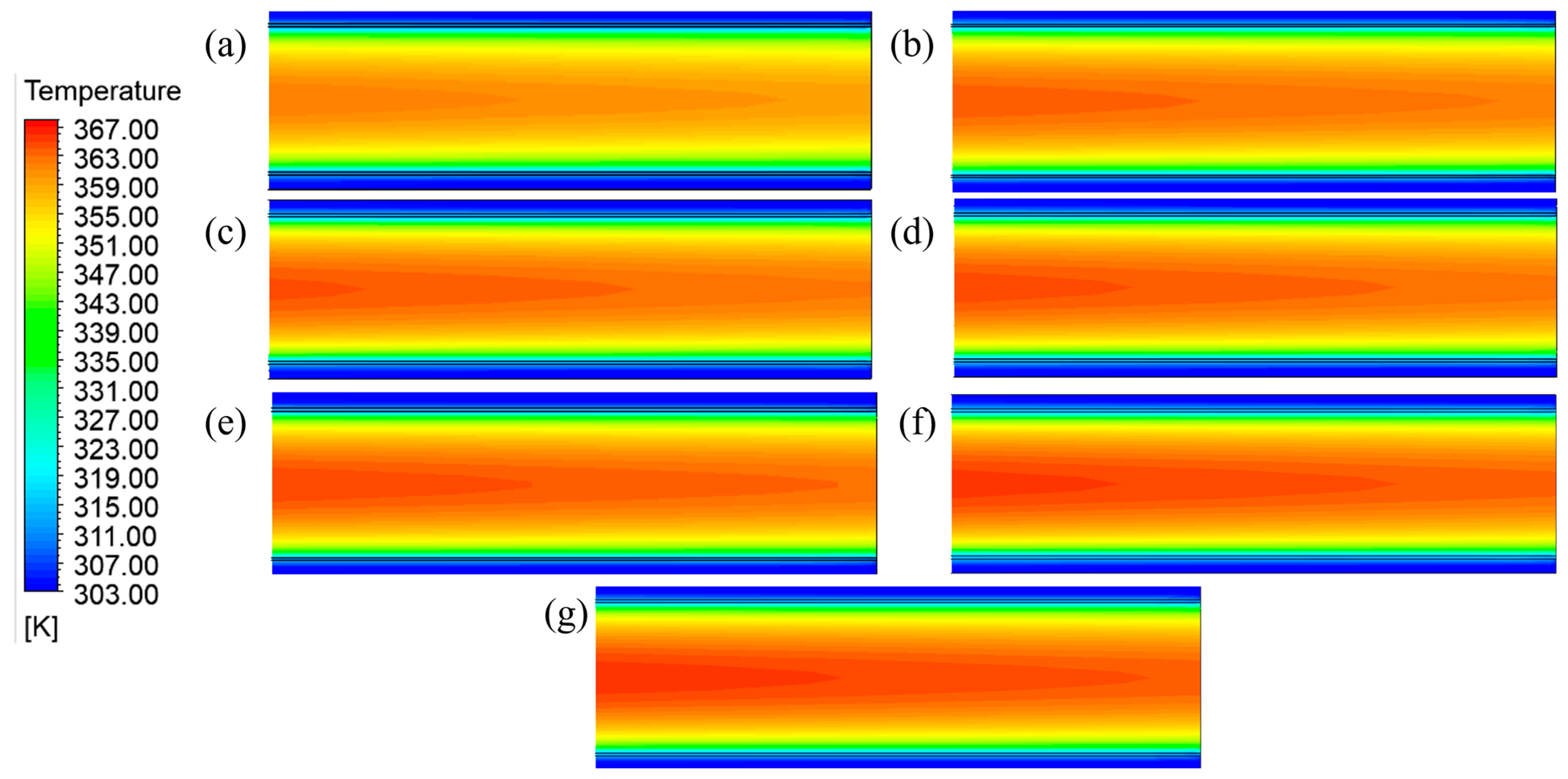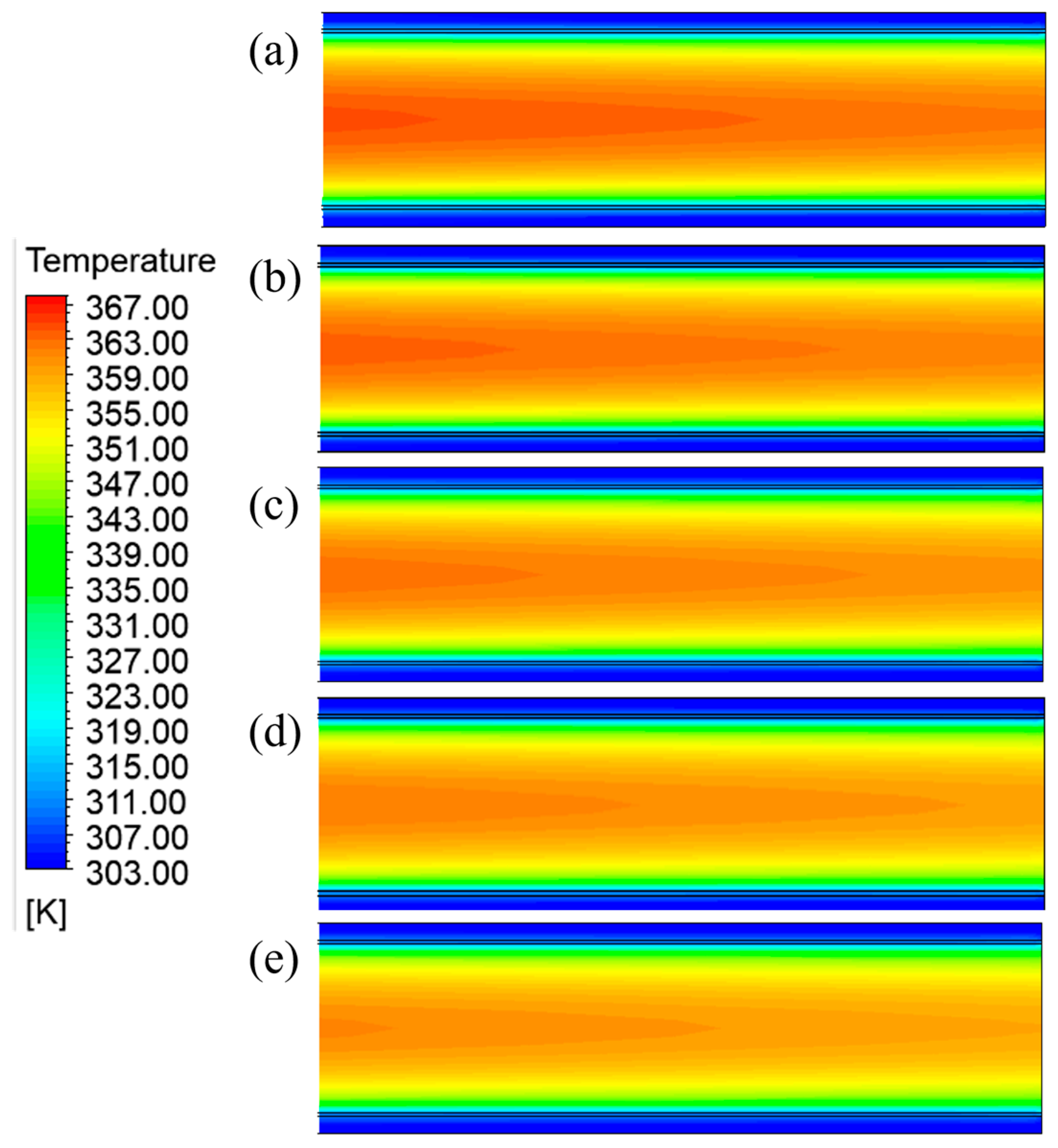 3.1.2. Influence of Product Channel Width on Cooling Efficiency