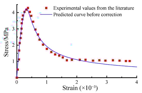 Comparison between the modified uniaxial compressive curve and experimental results.