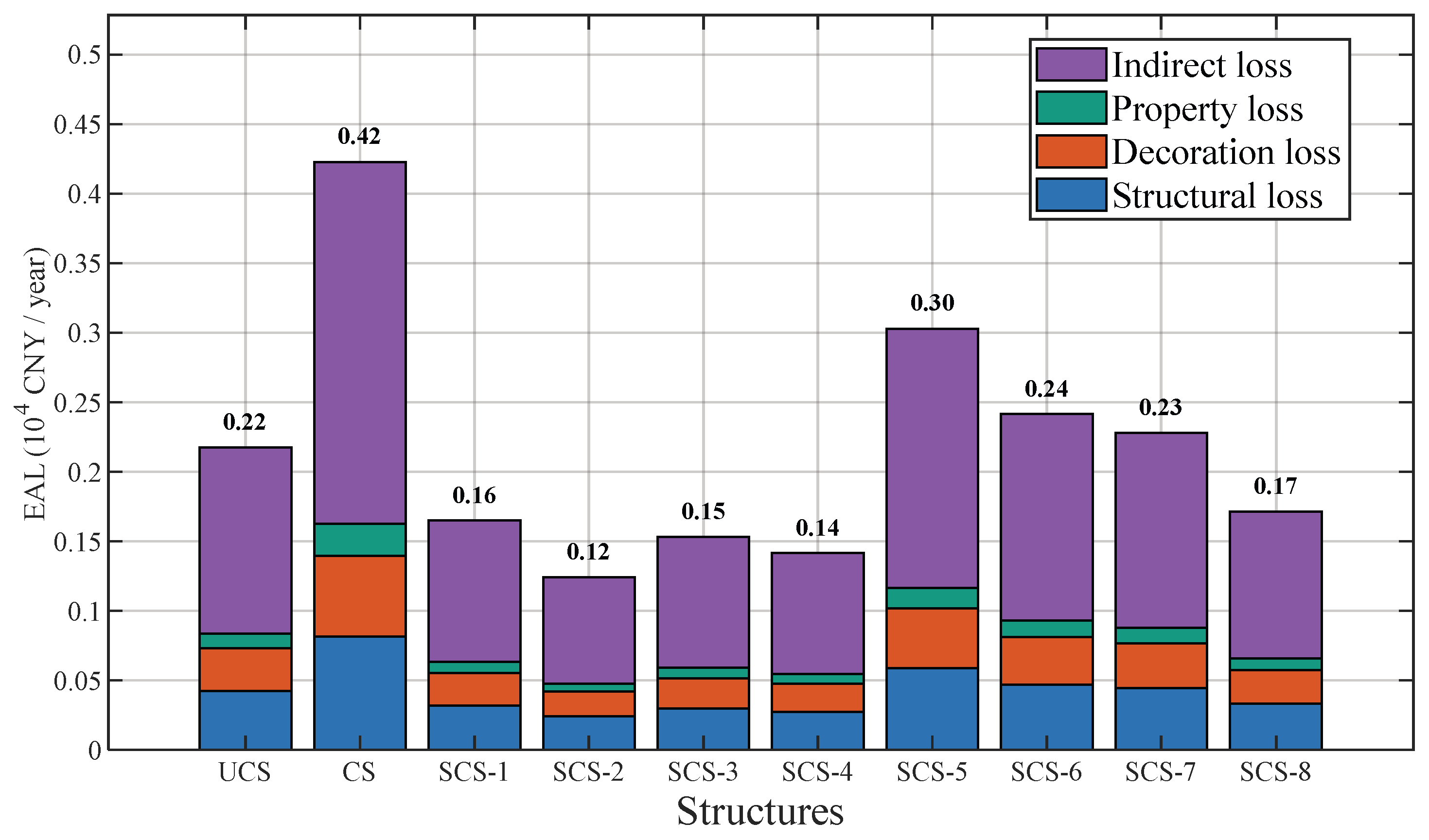 - Expected annual loss (EAL): evaluates direct and indirect economic losses over the life cycle and represents economic performance.