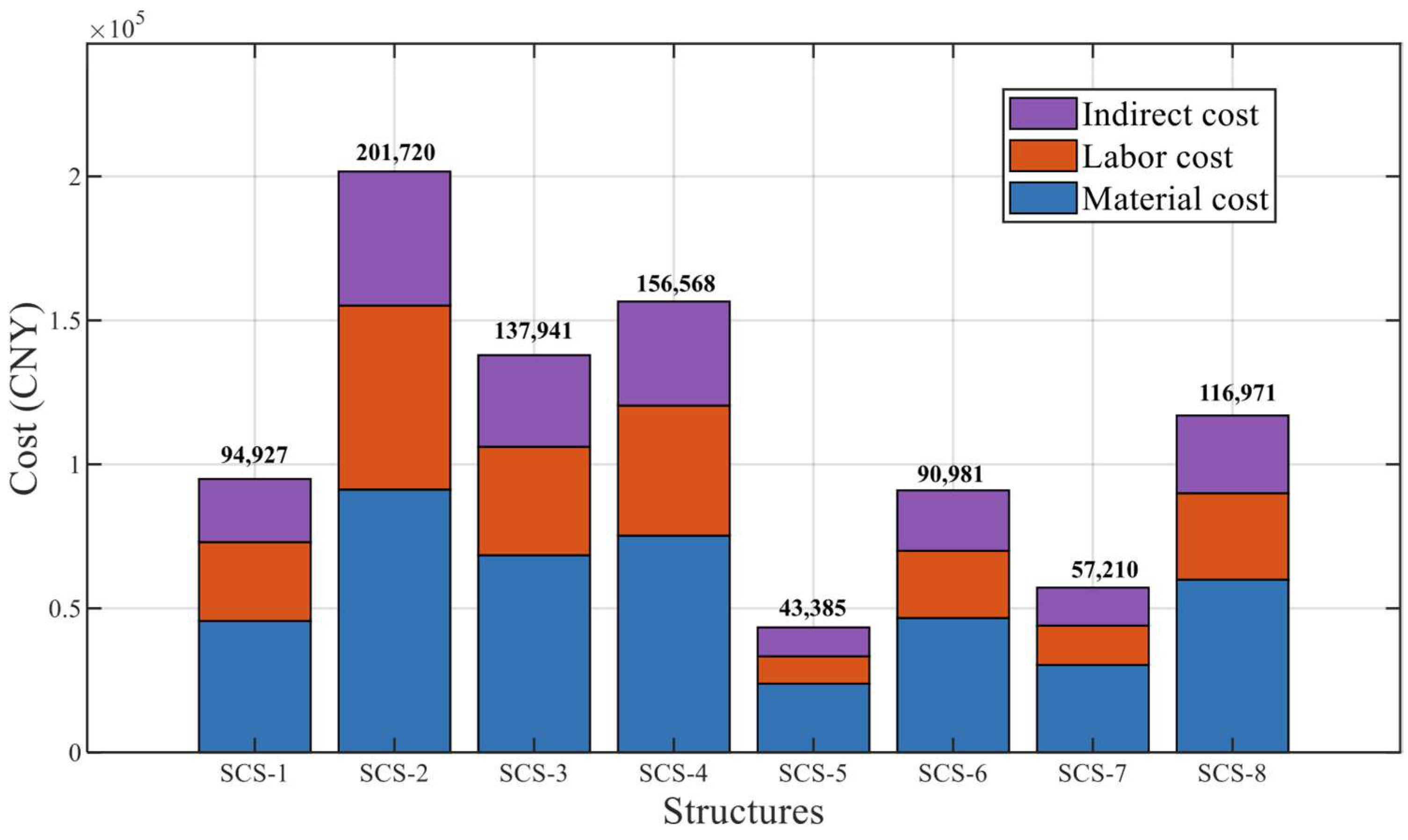 - Carbon emissions (Cem): measure the carbon footprint of material production, transportation, and construction, highlighting environmental impact and alignment with low-carbon goals.