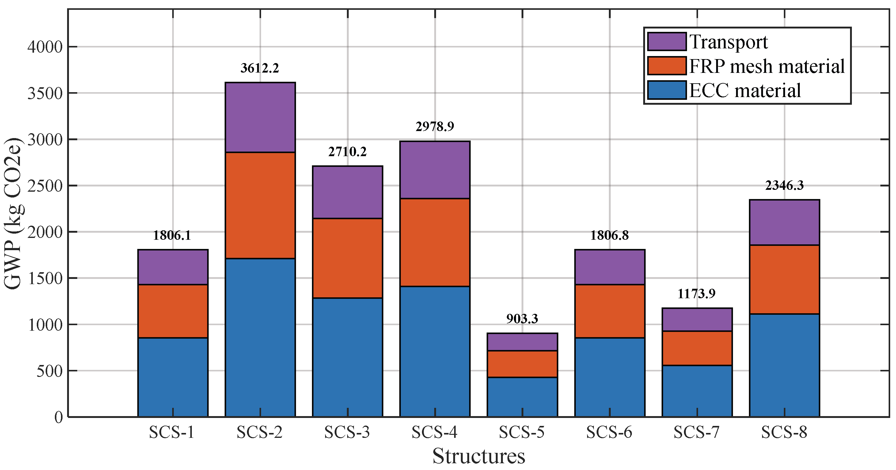 - Liu, T.; Tang, J.-T.; Zhang, S.; Dong, L.; Hu, L.; Meng, X.; Zhao, Y.; Feng, P. Carbon emissions of durable FRP composite structures in civil engineering. Eng. Struct. 2024, 315, 118482. [Google Scholar] [CrossRef]