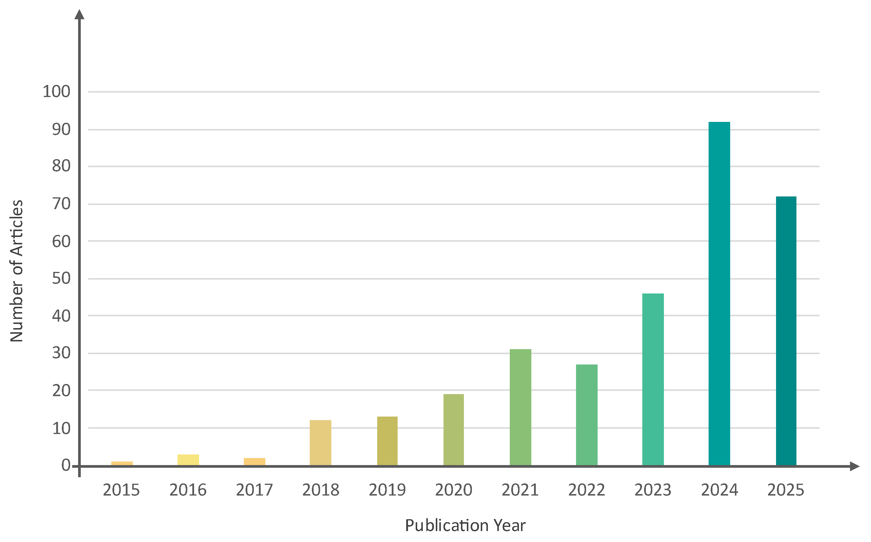 - Limiting the publication years to the range of 2015–2025.