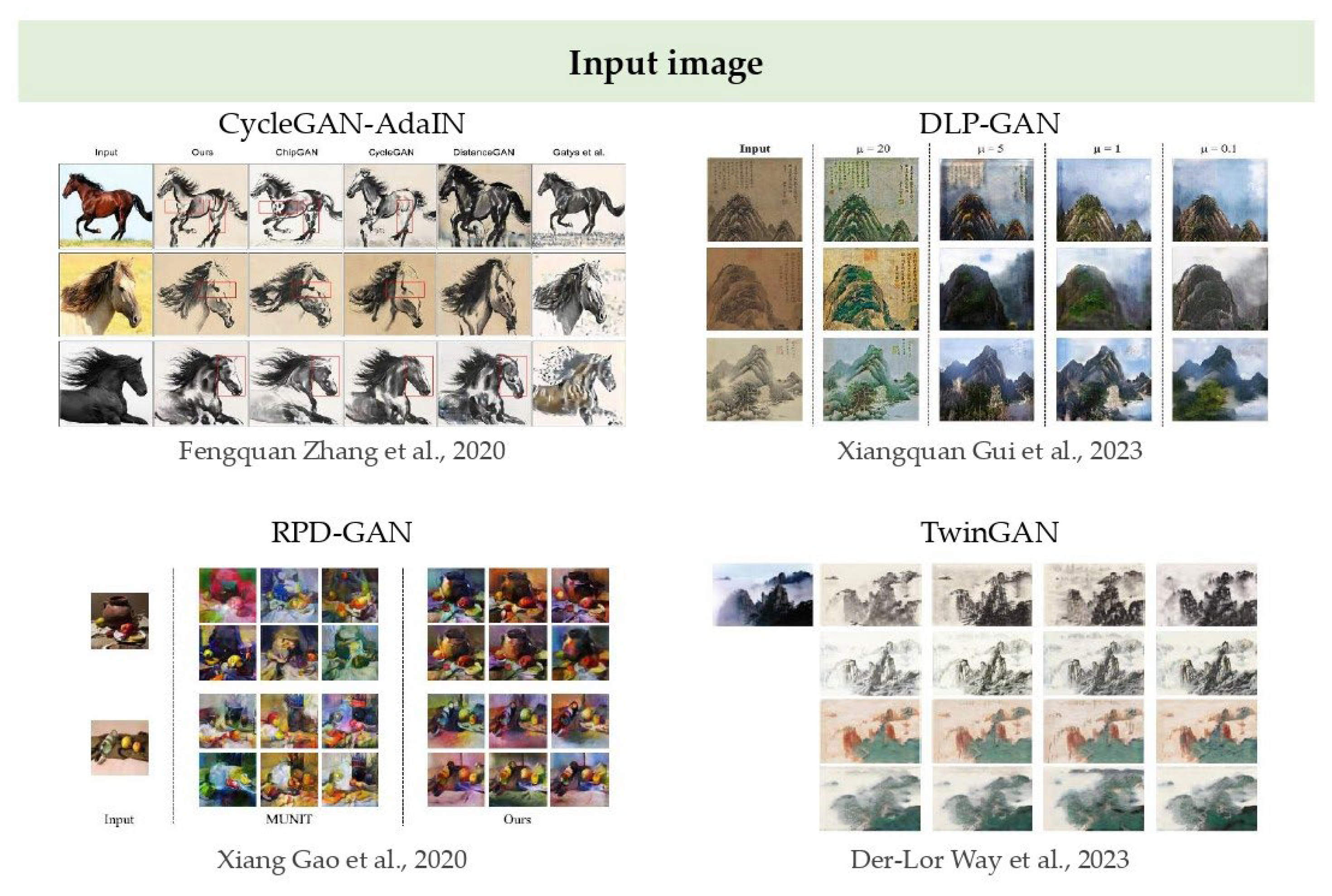 - Hong, S.; Shen, J.; Lü, G.; Liu, X.; Mao, Y.; Sun, N.; Tang, L. Aesthetic style transferring method based on deep neural network between Chinese landscape painting and classical private garden’s virtual scenario. Int. J. Digit. Earth 2023, 16, 1491–1509. [Google Scholar] [CrossRef]
