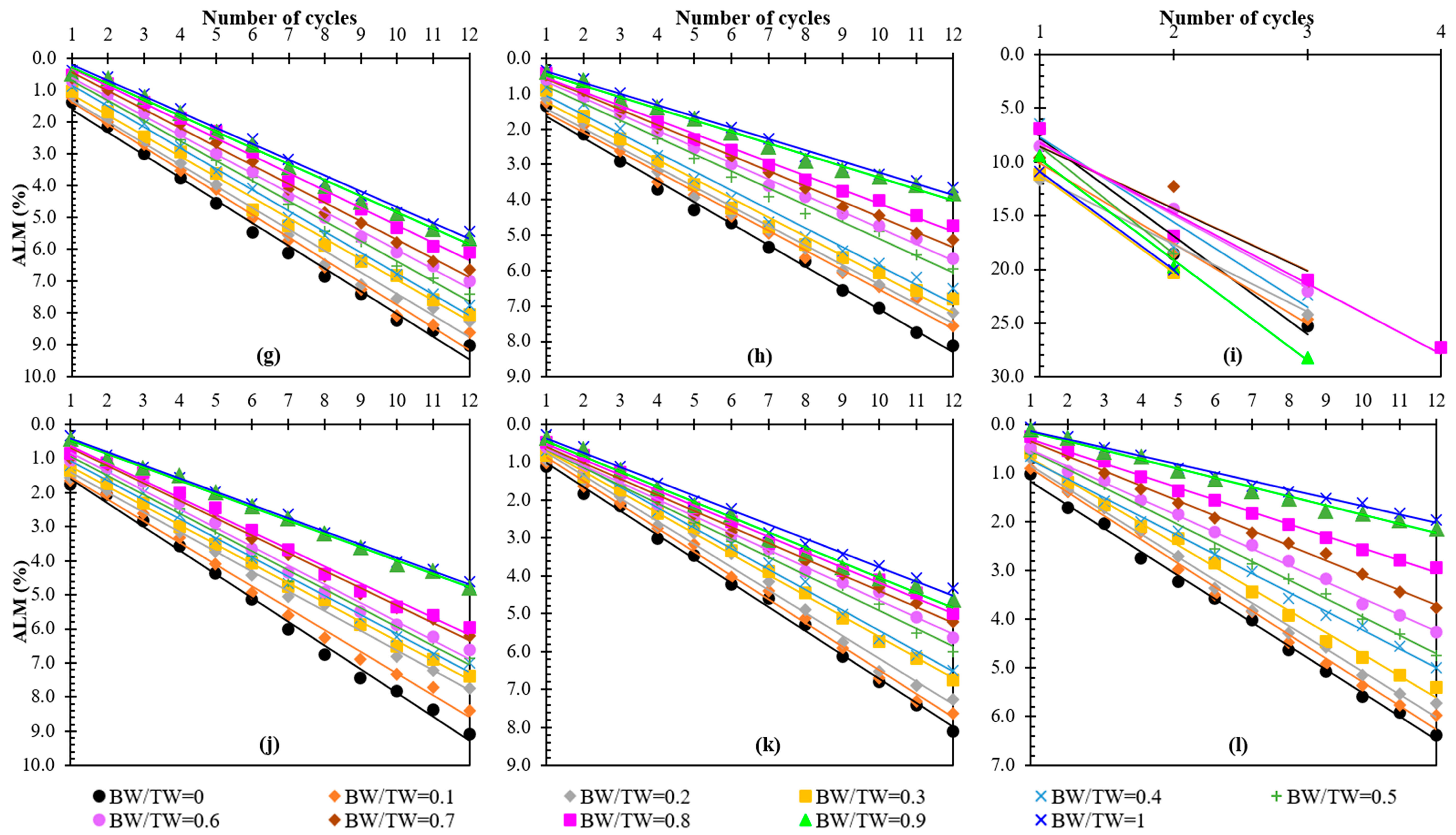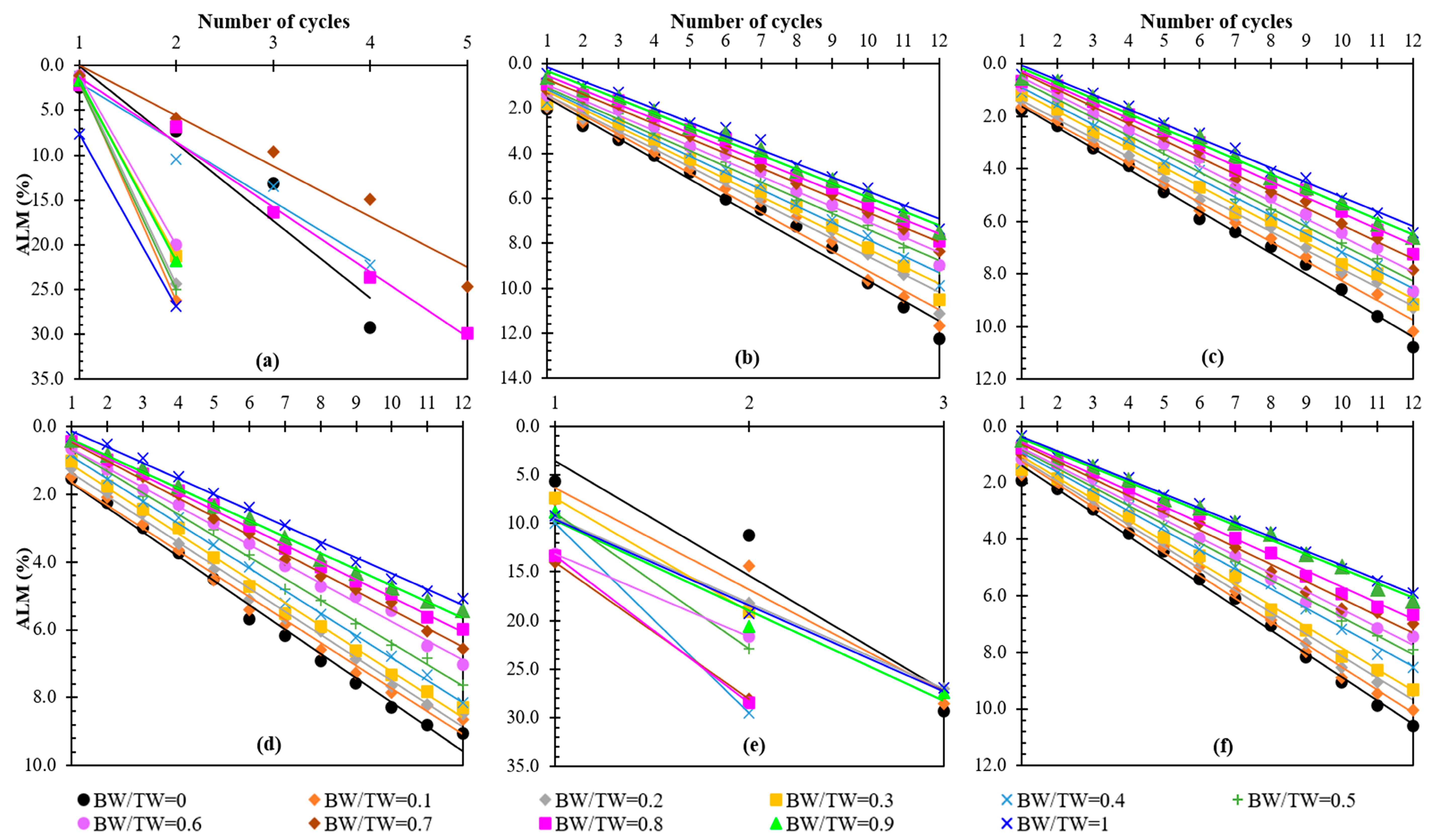 | Freeze–Thaw Accumulated Mass Loss (%) | A: BW/TW | 1599.33 | 10 | 159.93 | 54.07 | 0.000 |