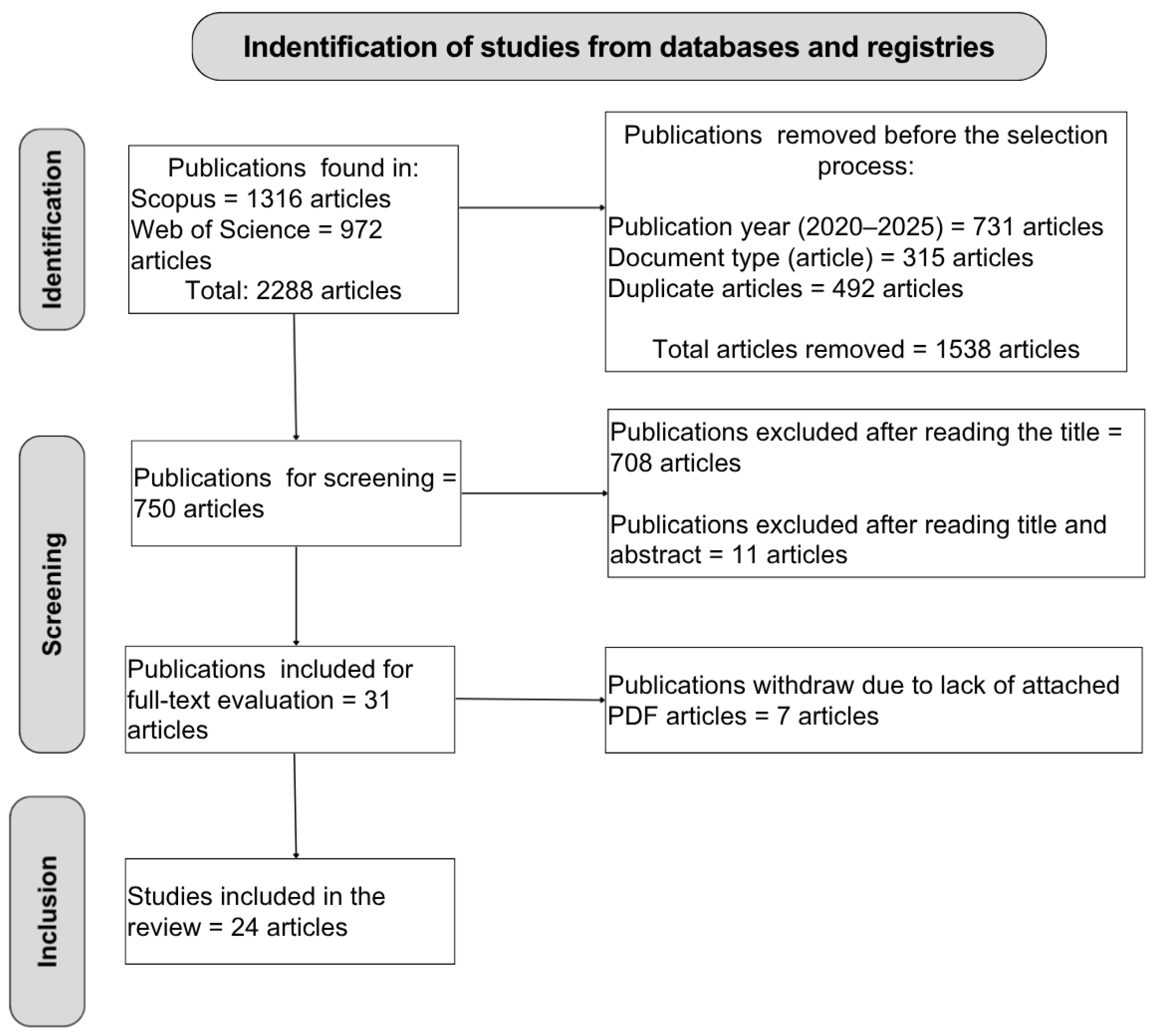 - Page, M.J.; McKenzie, J.E.; Bossuyt, P.M.; Boutron, I.; Hoffmann, T.C.; Mulrow, C.D.; Shamseer, L.; Tetzlaff, J.M.; Akl, E.A.; Brennan, S.E.; et al. The PRISMA 2020 Statement: An Updated Guideline for Reporting Systematic Reviews. Br. Med. J. 2021, 372, n71. [Google Scholar] [CrossRef] [PubMed]