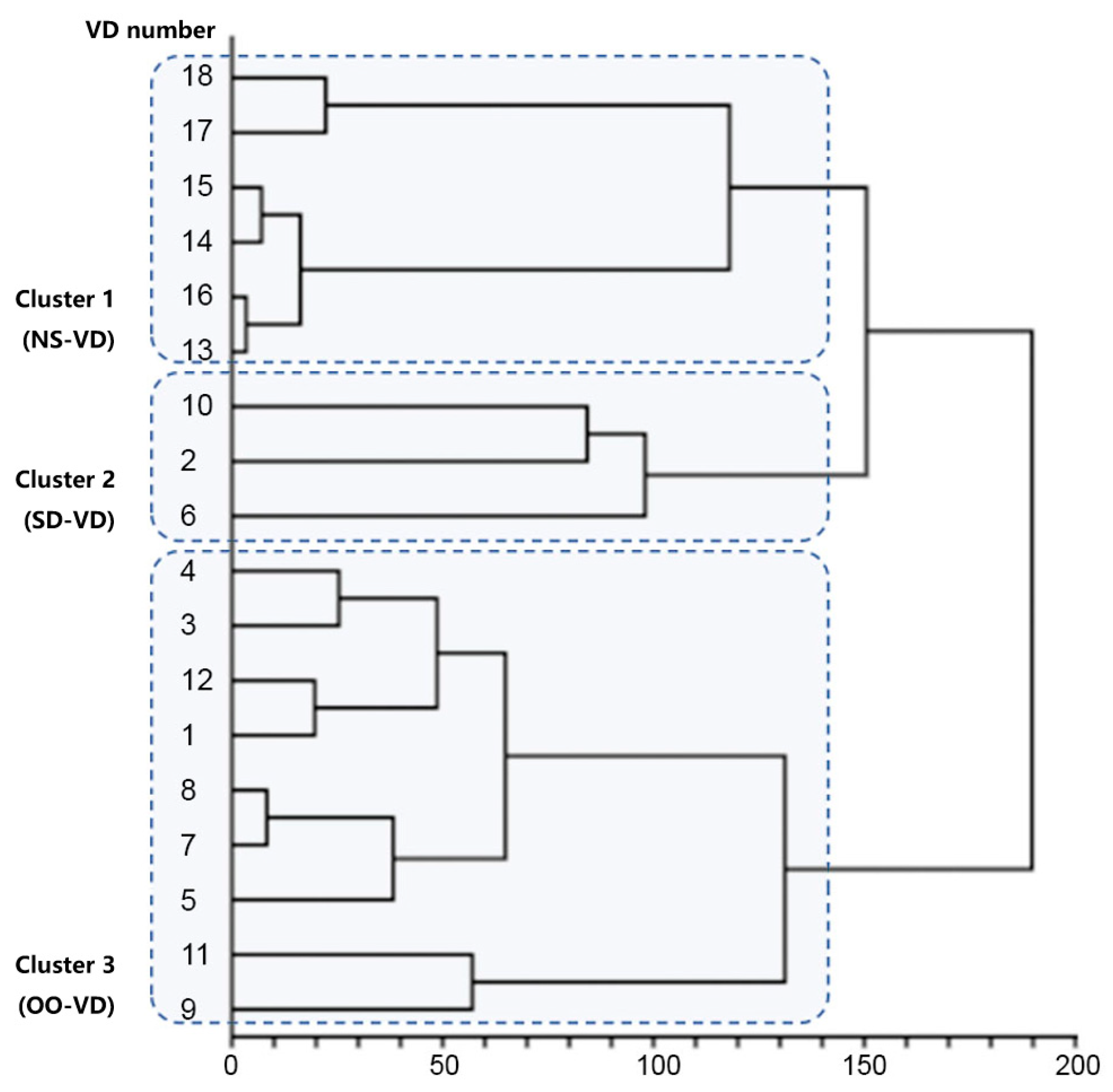 | Cluster 1 (NS-VD) | Cluster 2 (SD-VD) | Cluster 3 (OO-VD) | |||